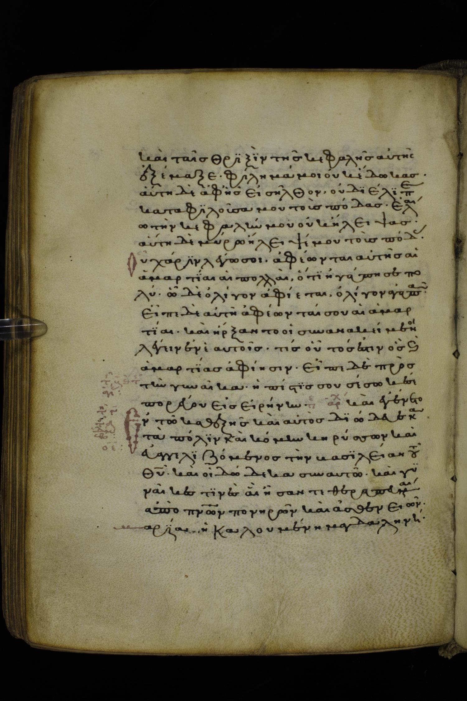 Thirteenth or fourteenth century minuscule of the Gospels on parchment; 312 leaves, 1 column, 19-22 lines per column. Images were taken at the National Library of Greece in Athens.