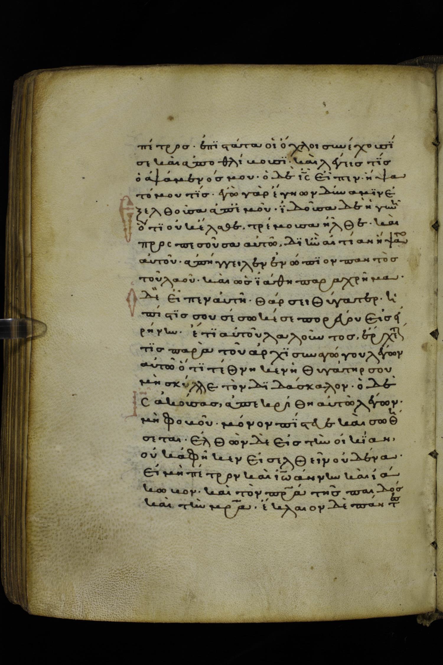 Thirteenth or fourteenth century minuscule of the Gospels on parchment; 312 leaves, 1 column, 19-22 lines per column. Images were taken at the National Library of Greece in Athens.