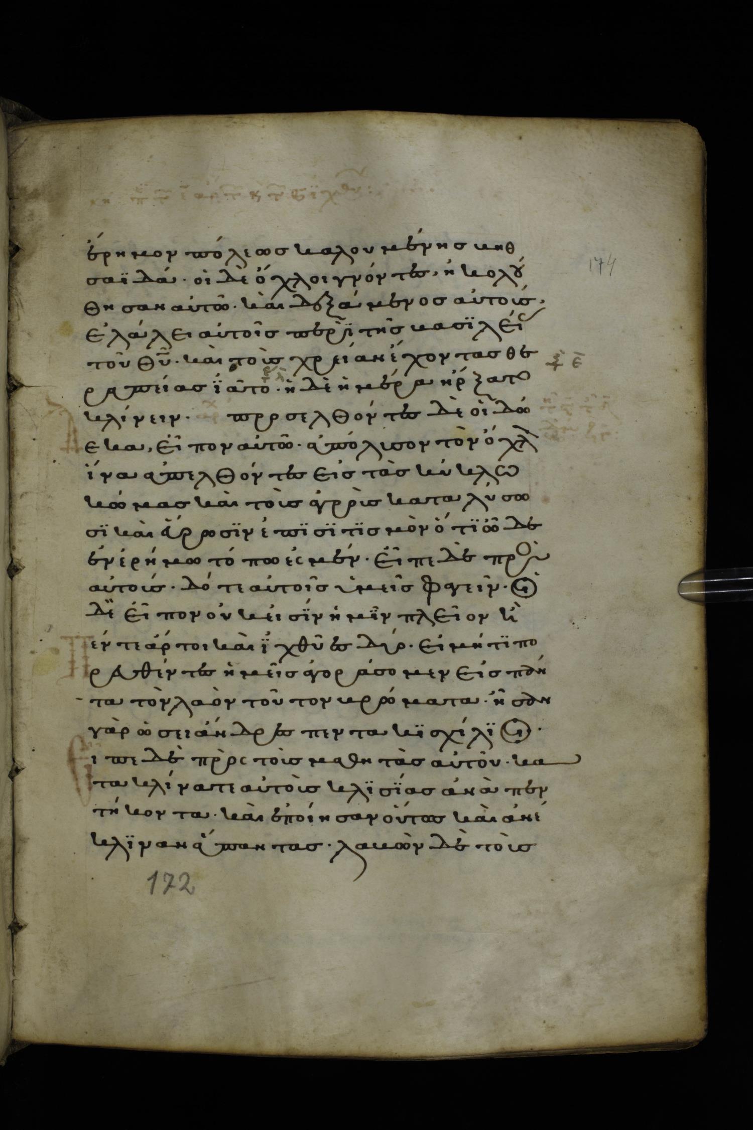 Thirteenth or fourteenth century minuscule of the Gospels on parchment; 312 leaves, 1 column, 19-22 lines per column. Images were taken at the National Library of Greece in Athens.