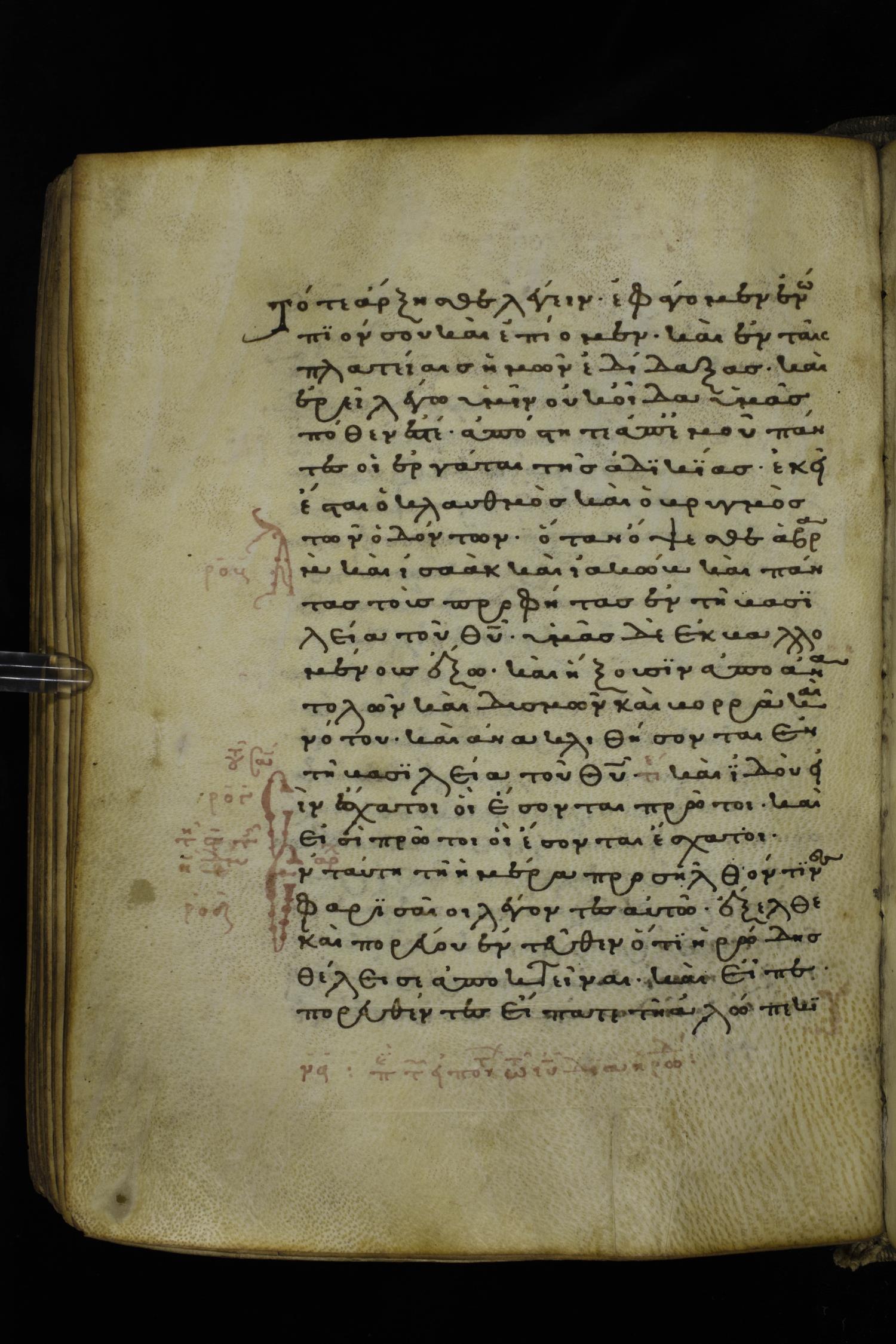 Thirteenth or fourteenth century minuscule of the Gospels on parchment; 312 leaves, 1 column, 19-22 lines per column. Images were taken at the National Library of Greece in Athens.