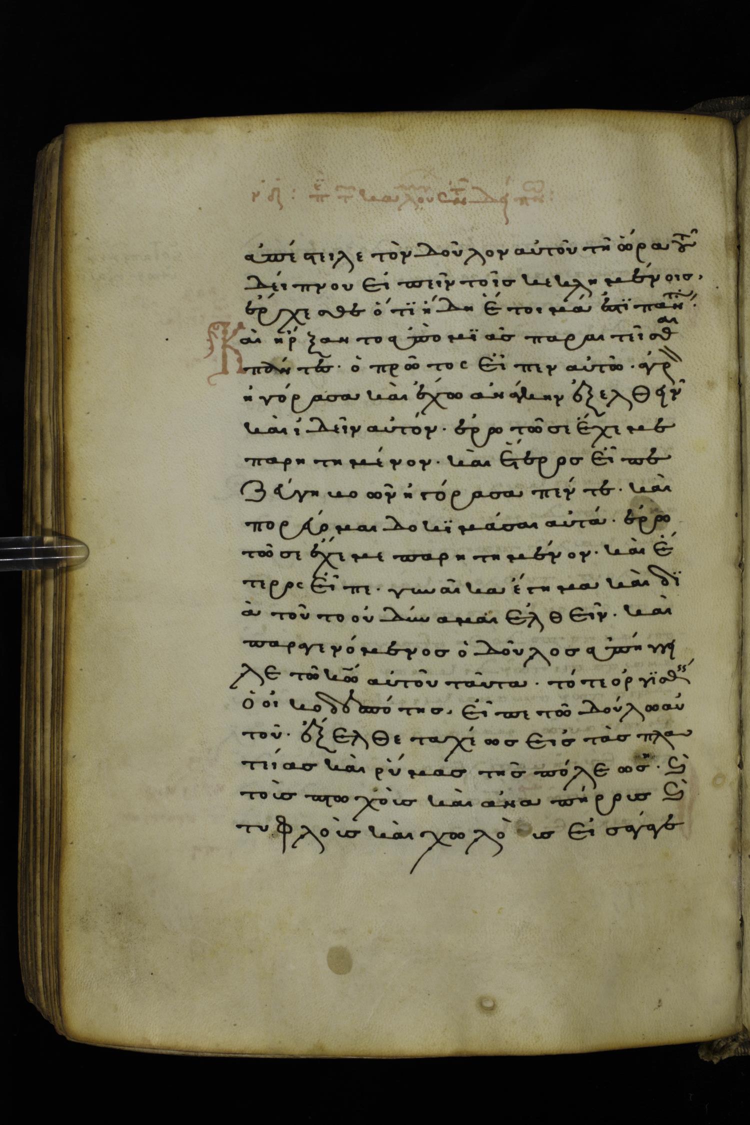 Thirteenth or fourteenth century minuscule of the Gospels on parchment; 312 leaves, 1 column, 19-22 lines per column. Images were taken at the National Library of Greece in Athens.