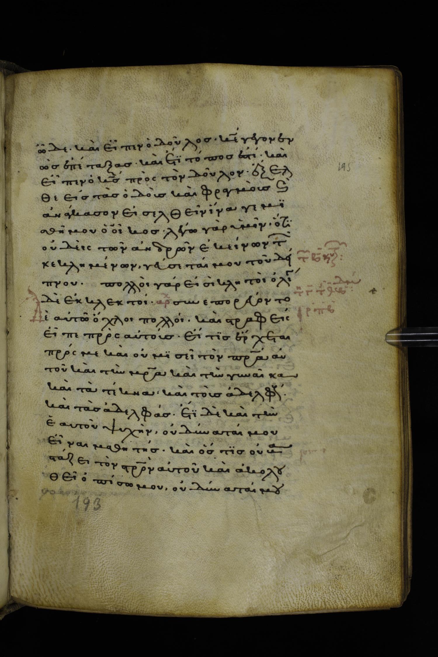 Thirteenth or fourteenth century minuscule of the Gospels on parchment; 312 leaves, 1 column, 19-22 lines per column. Images were taken at the National Library of Greece in Athens.