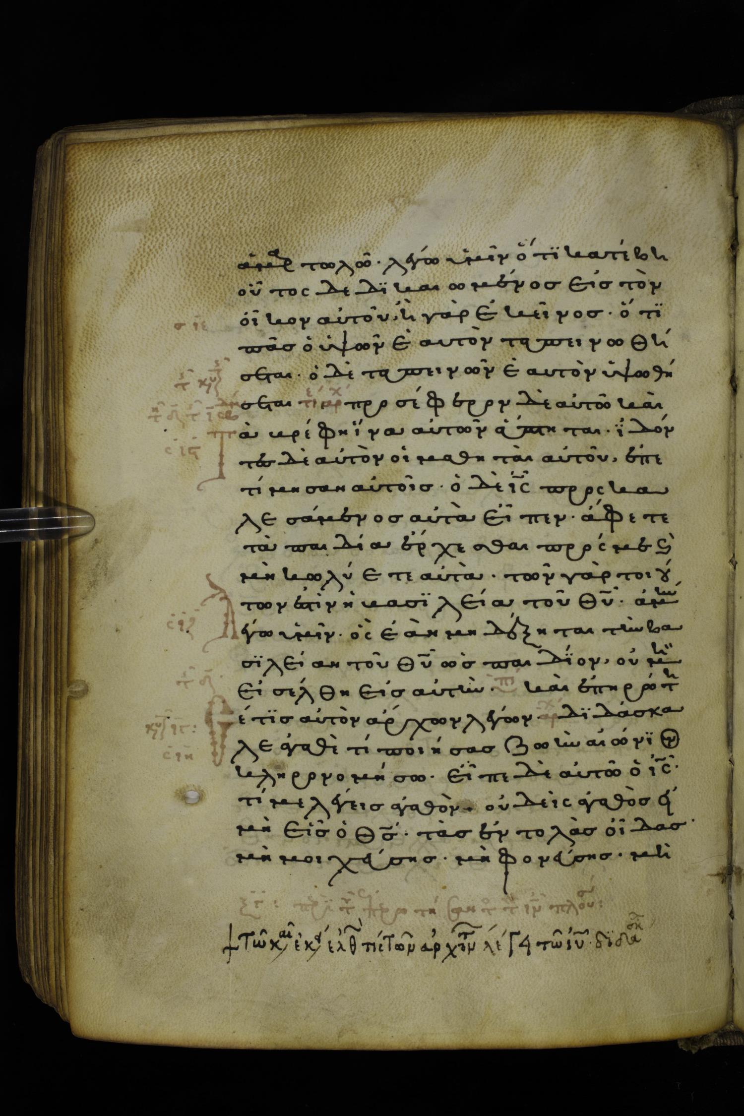 Thirteenth or fourteenth century minuscule of the Gospels on parchment; 312 leaves, 1 column, 19-22 lines per column. Images were taken at the National Library of Greece in Athens.