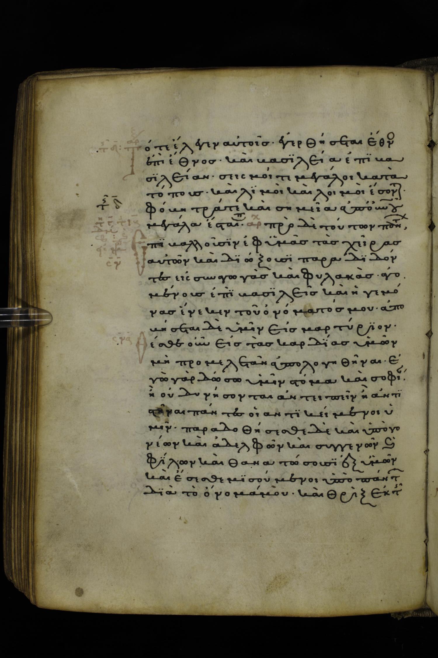 Thirteenth or fourteenth century minuscule of the Gospels on parchment; 312 leaves, 1 column, 19-22 lines per column. Images were taken at the National Library of Greece in Athens.