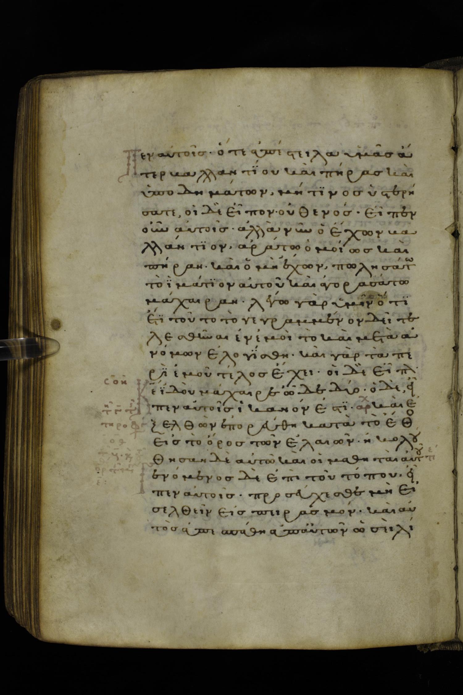 Thirteenth or fourteenth century minuscule of the Gospels on parchment; 312 leaves, 1 column, 19-22 lines per column. Images were taken at the National Library of Greece in Athens.