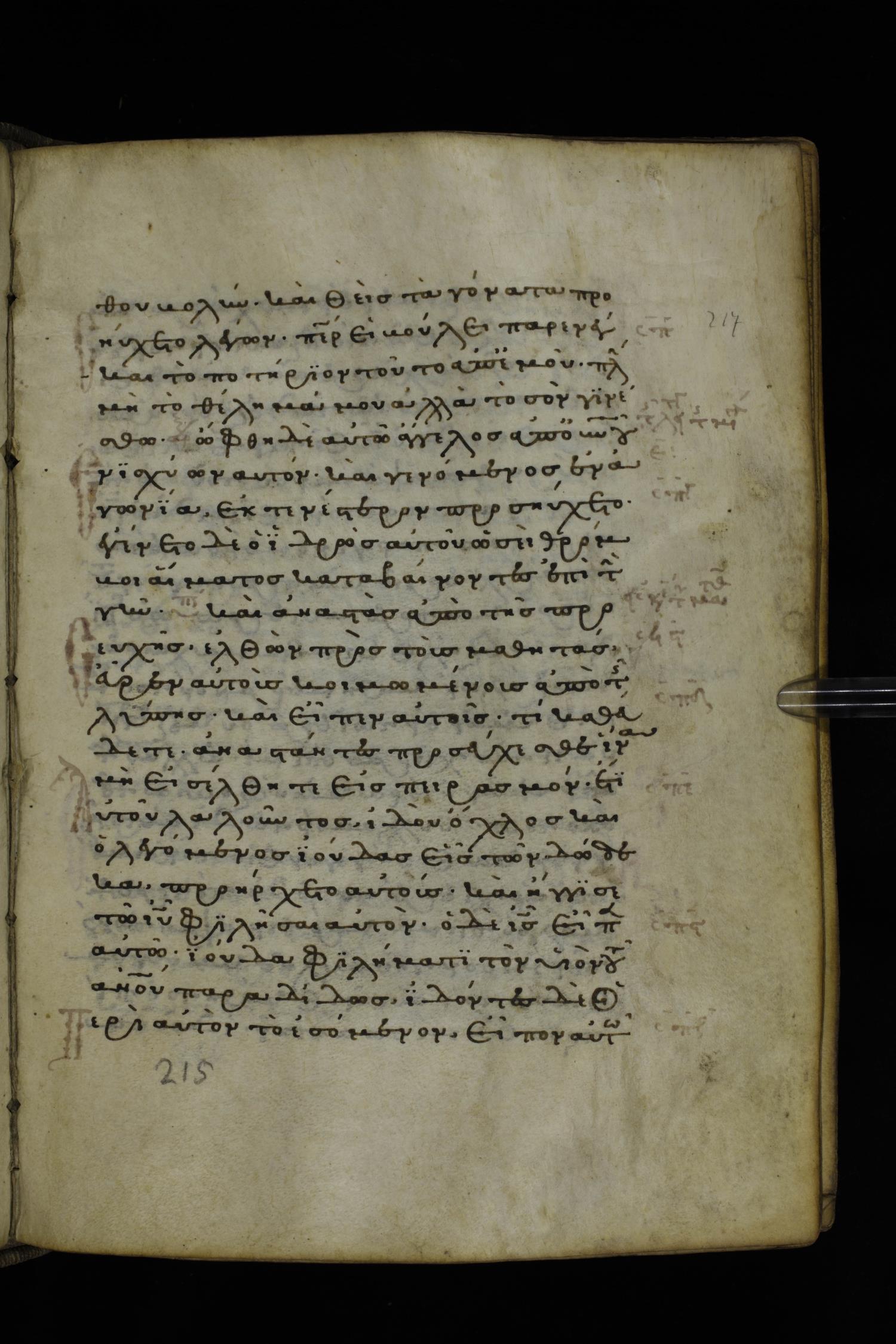 Thirteenth or fourteenth century minuscule of the Gospels on parchment; 312 leaves, 1 column, 19-22 lines per column. Images were taken at the National Library of Greece in Athens.