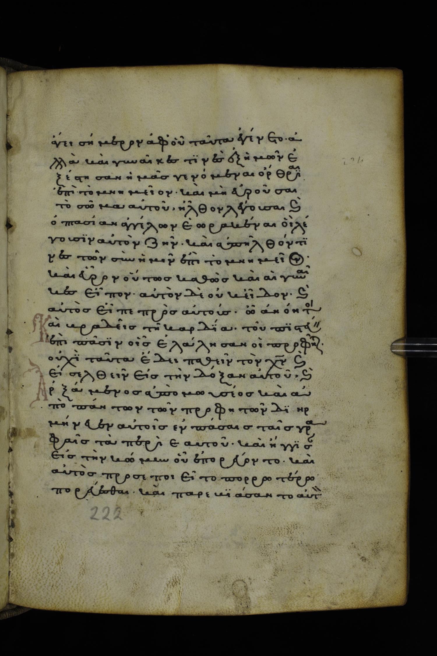 Thirteenth or fourteenth century minuscule of the Gospels on parchment; 312 leaves, 1 column, 19-22 lines per column. Images were taken at the National Library of Greece in Athens.