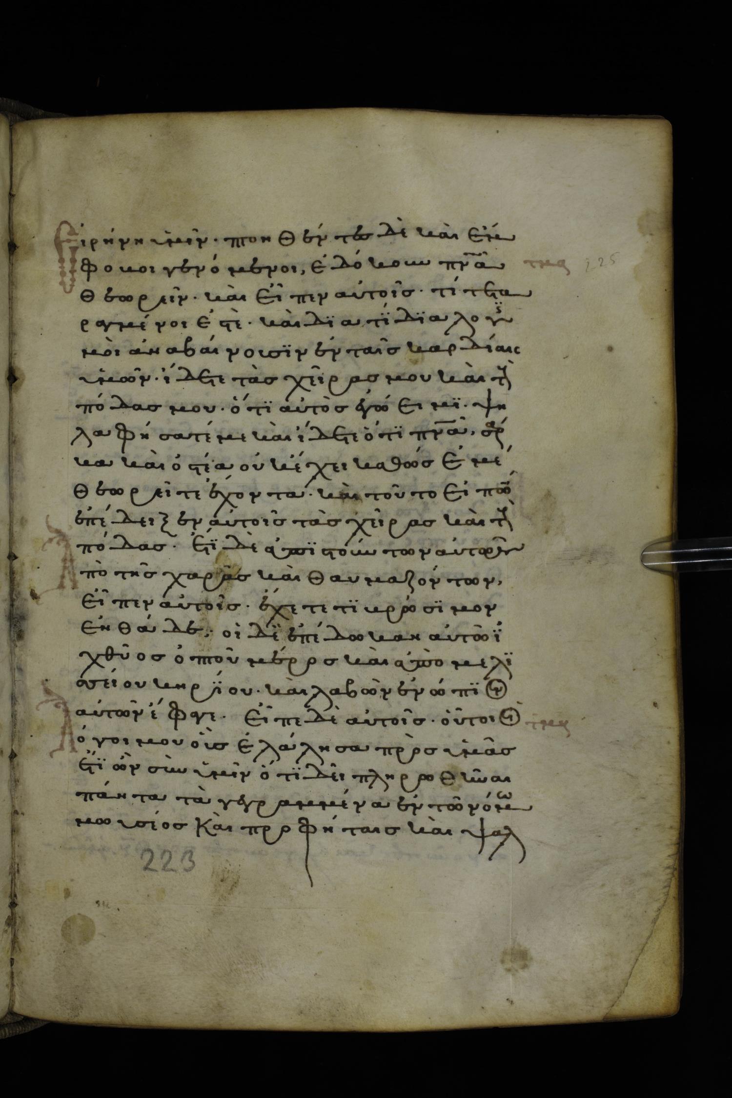 Thirteenth or fourteenth century minuscule of the Gospels on parchment; 312 leaves, 1 column, 19-22 lines per column. Images were taken at the National Library of Greece in Athens.