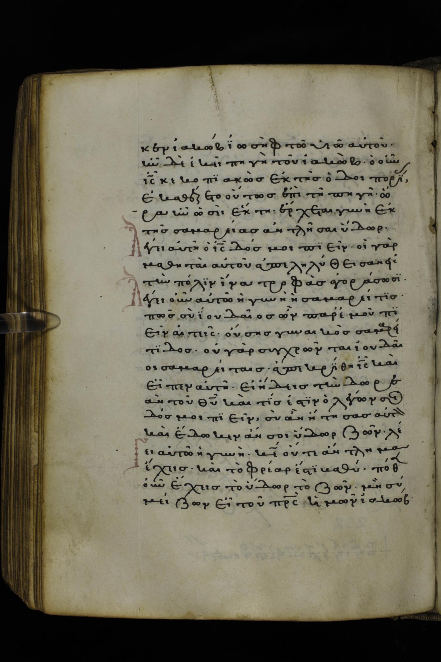 Thirteenth or fourteenth century minuscule of the Gospels on parchment; 312 leaves, 1 column, 19-22 lines per column. Images were taken at the National Library of Greece in Athens.