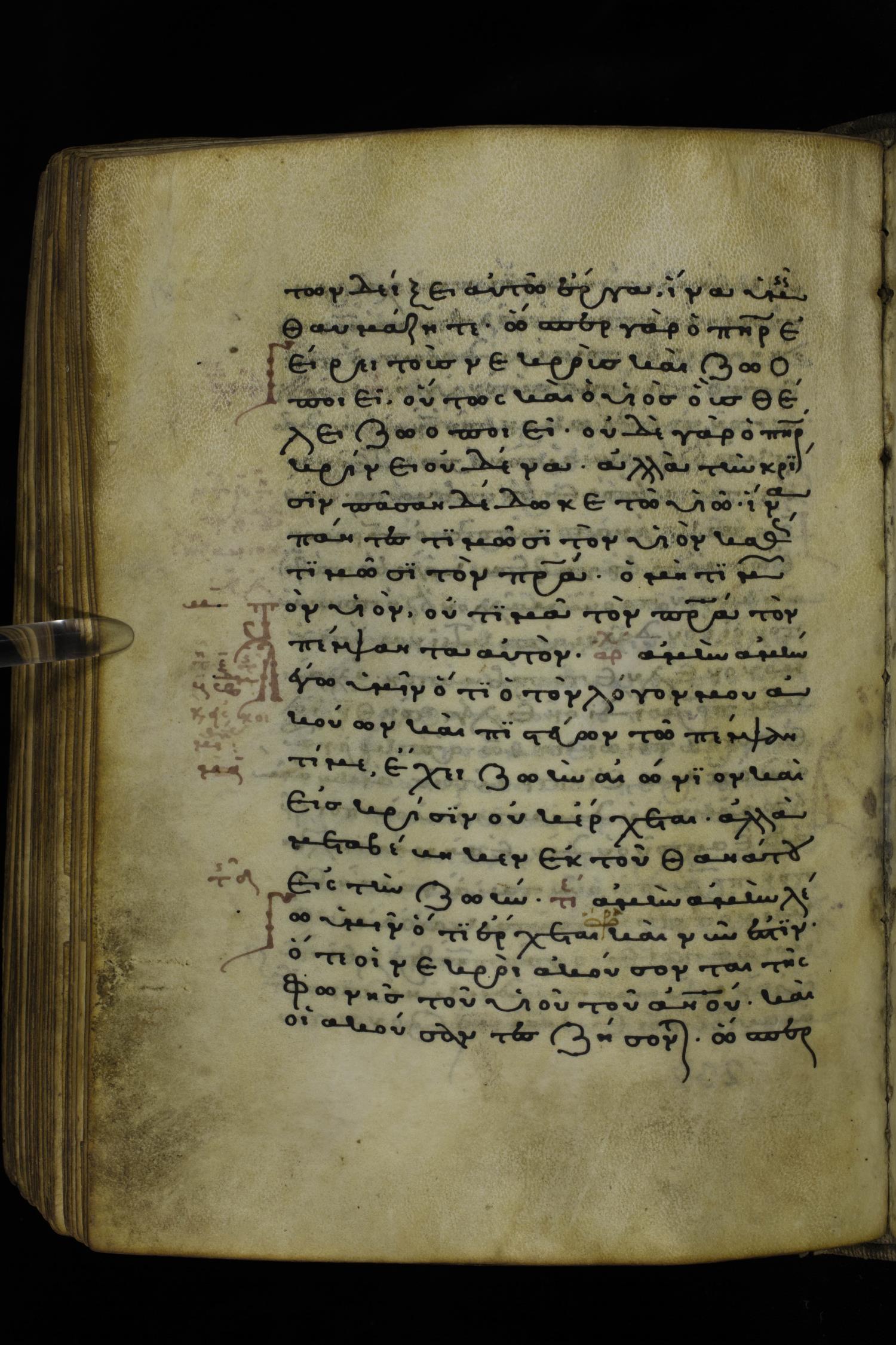 Thirteenth or fourteenth century minuscule of the Gospels on parchment; 312 leaves, 1 column, 19-22 lines per column. Images were taken at the National Library of Greece in Athens.