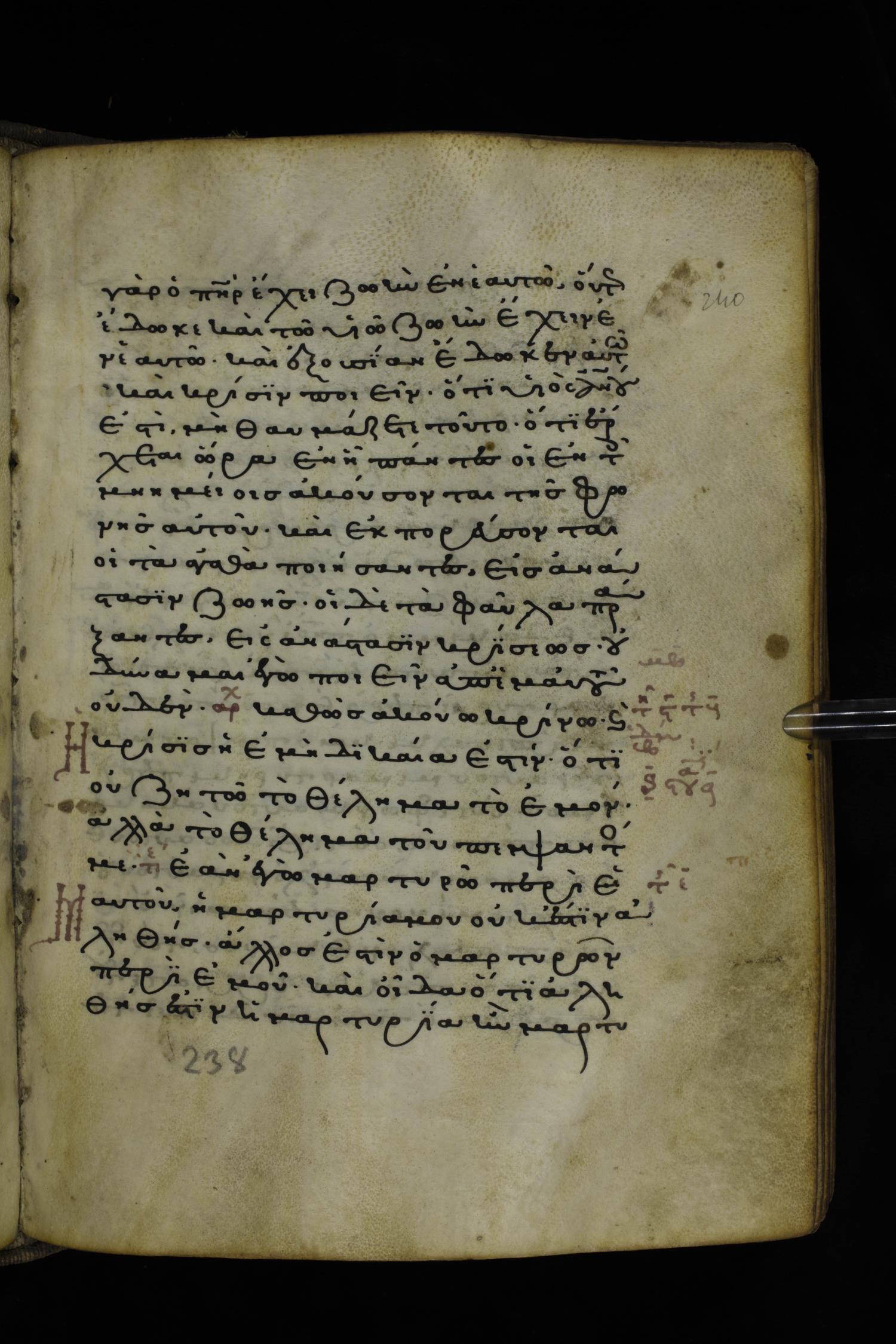 Thirteenth or fourteenth century minuscule of the Gospels on parchment; 312 leaves, 1 column, 19-22 lines per column. Images were taken at the National Library of Greece in Athens.