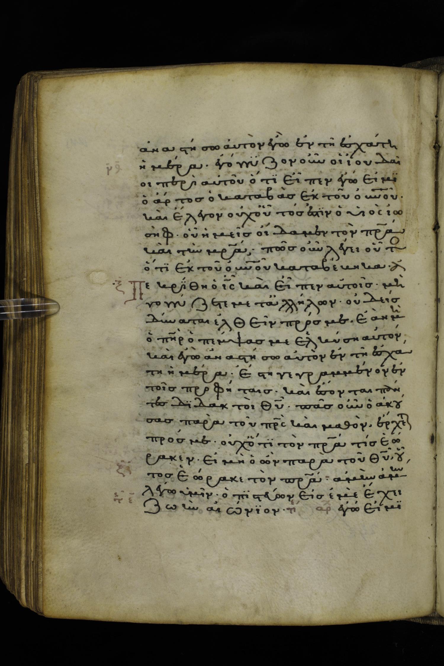 Thirteenth or fourteenth century minuscule of the Gospels on parchment; 312 leaves, 1 column, 19-22 lines per column. Images were taken at the National Library of Greece in Athens.