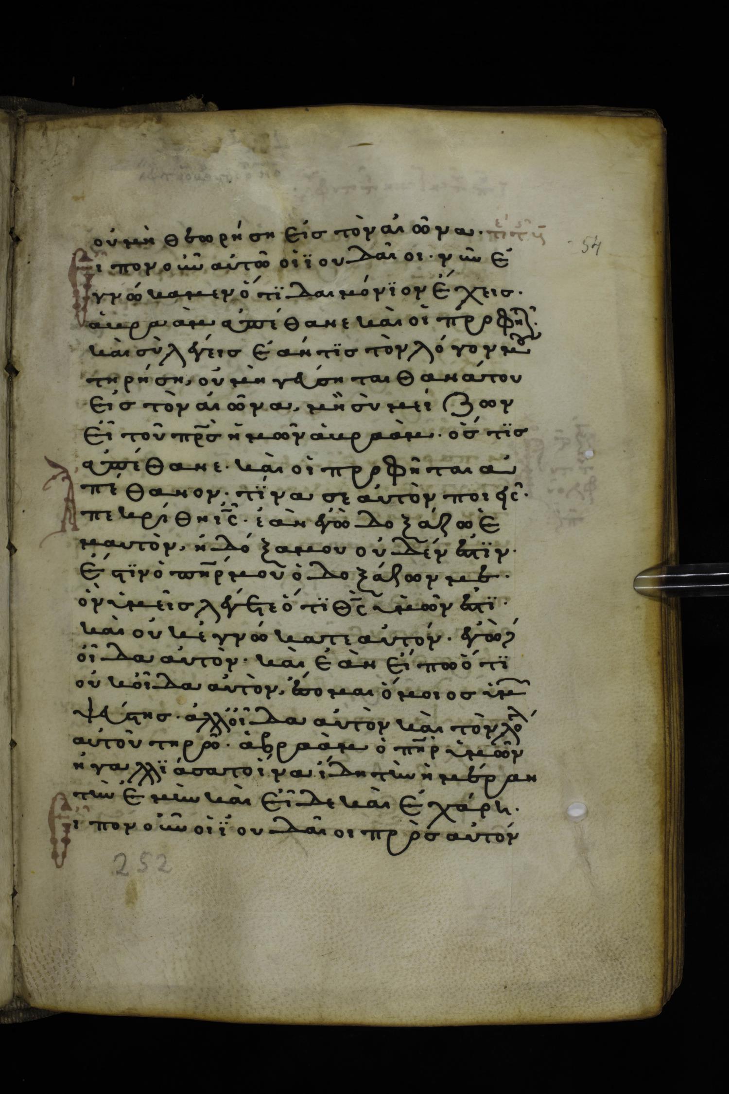 Thirteenth or fourteenth century minuscule of the Gospels on parchment; 312 leaves, 1 column, 19-22 lines per column. Images were taken at the National Library of Greece in Athens.