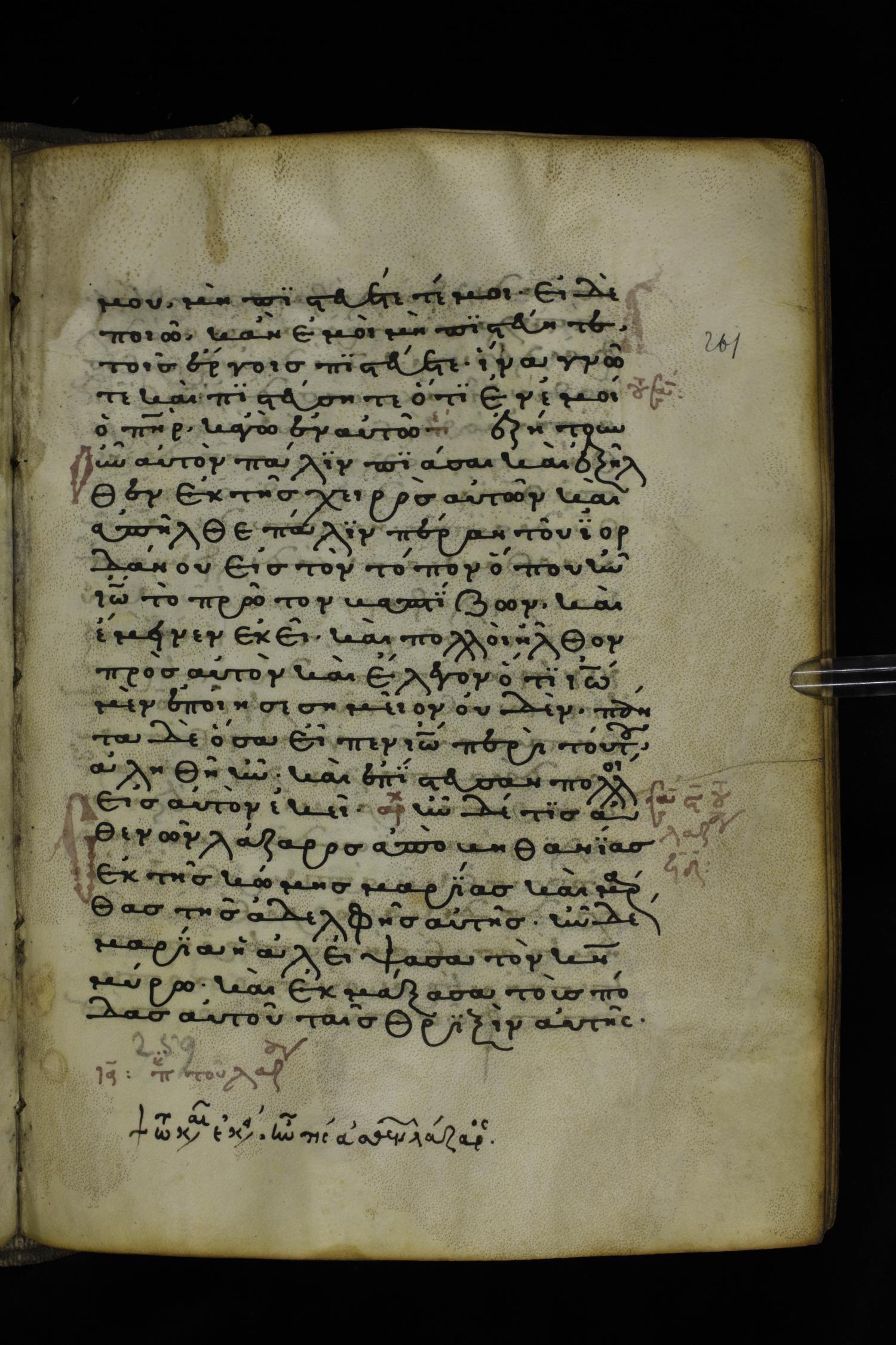 Thirteenth or fourteenth century minuscule of the Gospels on parchment; 312 leaves, 1 column, 19-22 lines per column. Images were taken at the National Library of Greece in Athens.