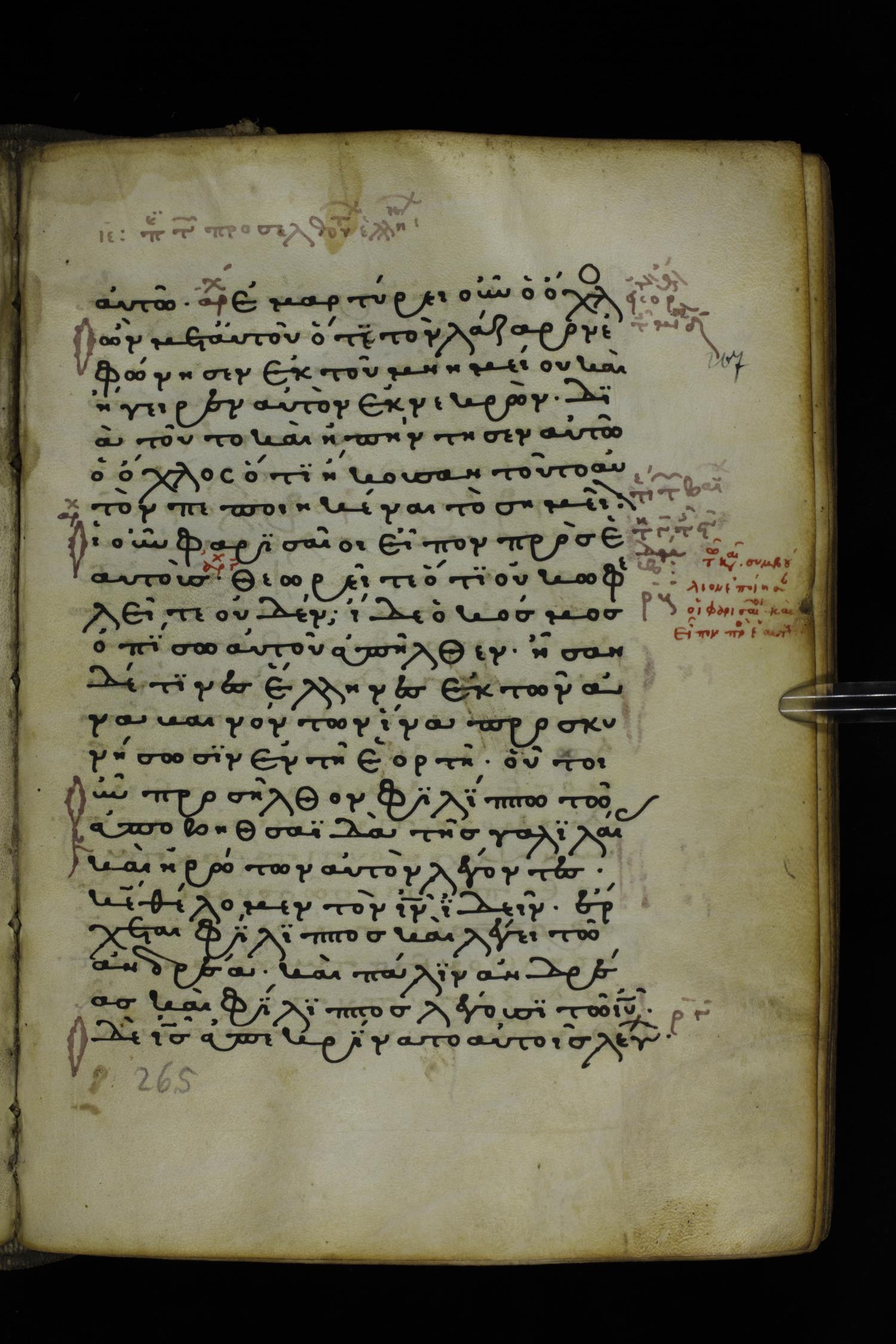 Thirteenth or fourteenth century minuscule of the Gospels on parchment; 312 leaves, 1 column, 19-22 lines per column. Images were taken at the National Library of Greece in Athens.