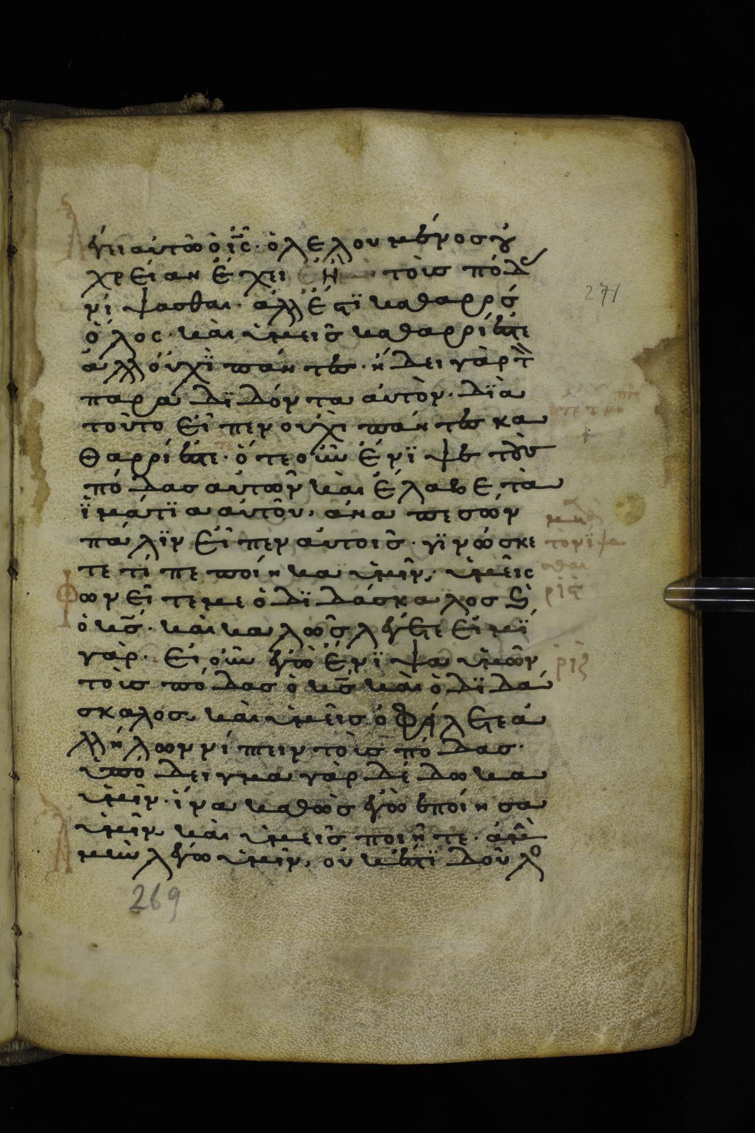 Thirteenth or fourteenth century minuscule of the Gospels on parchment; 312 leaves, 1 column, 19-22 lines per column. Images were taken at the National Library of Greece in Athens.