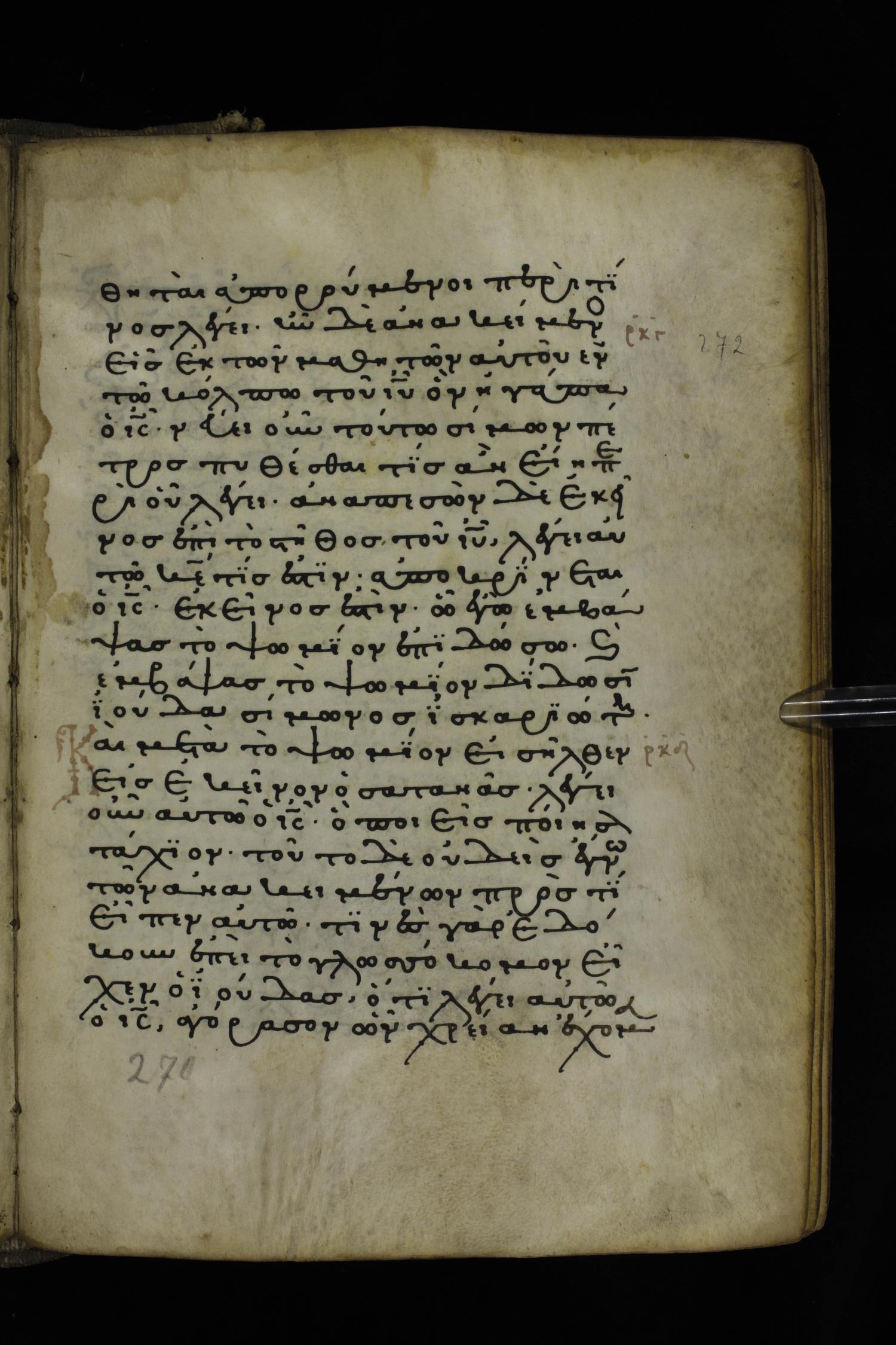 Thirteenth or fourteenth century minuscule of the Gospels on parchment; 312 leaves, 1 column, 19-22 lines per column. Images were taken at the National Library of Greece in Athens.