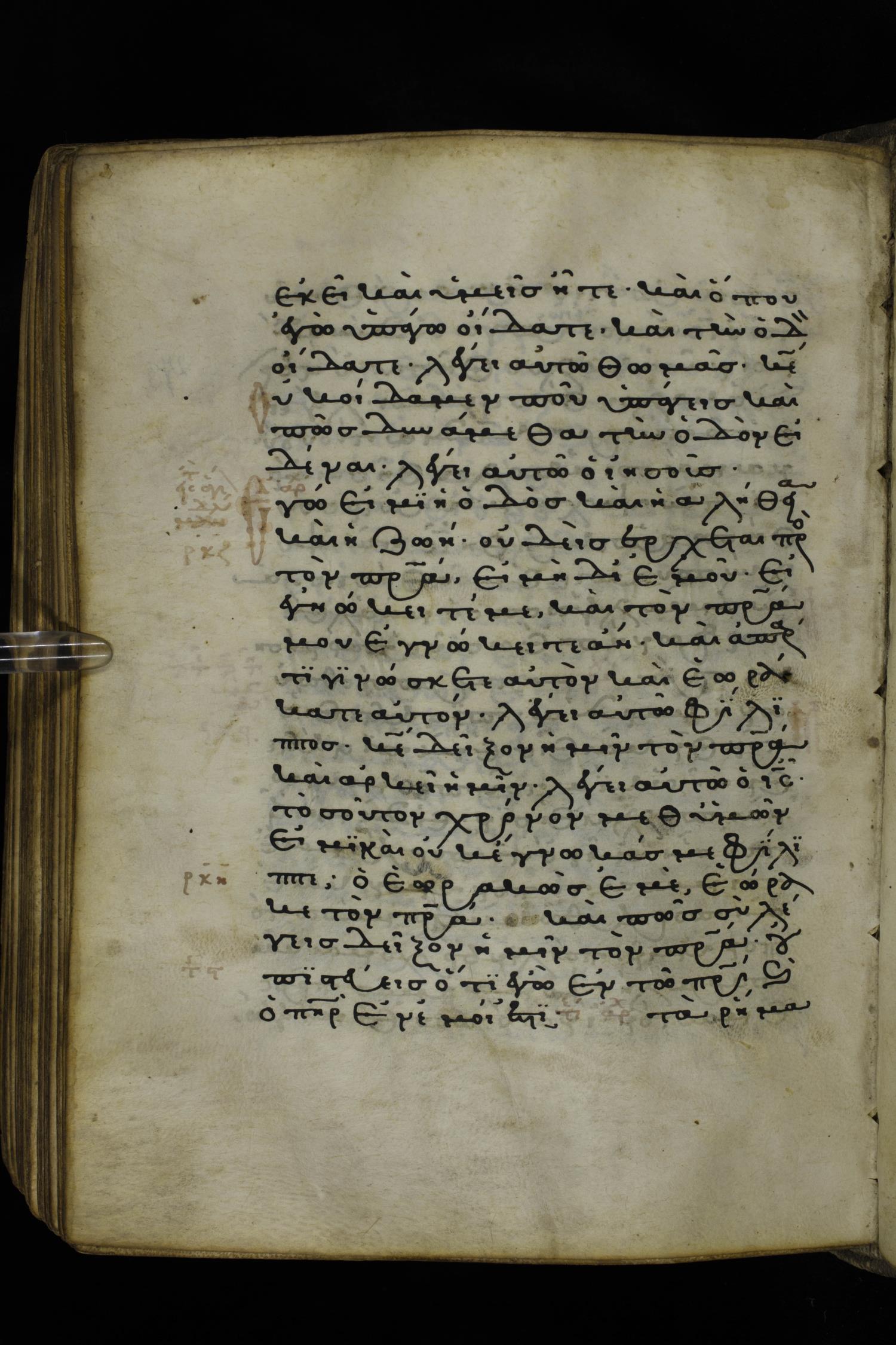 Thirteenth or fourteenth century minuscule of the Gospels on parchment; 312 leaves, 1 column, 19-22 lines per column. Images were taken at the National Library of Greece in Athens.