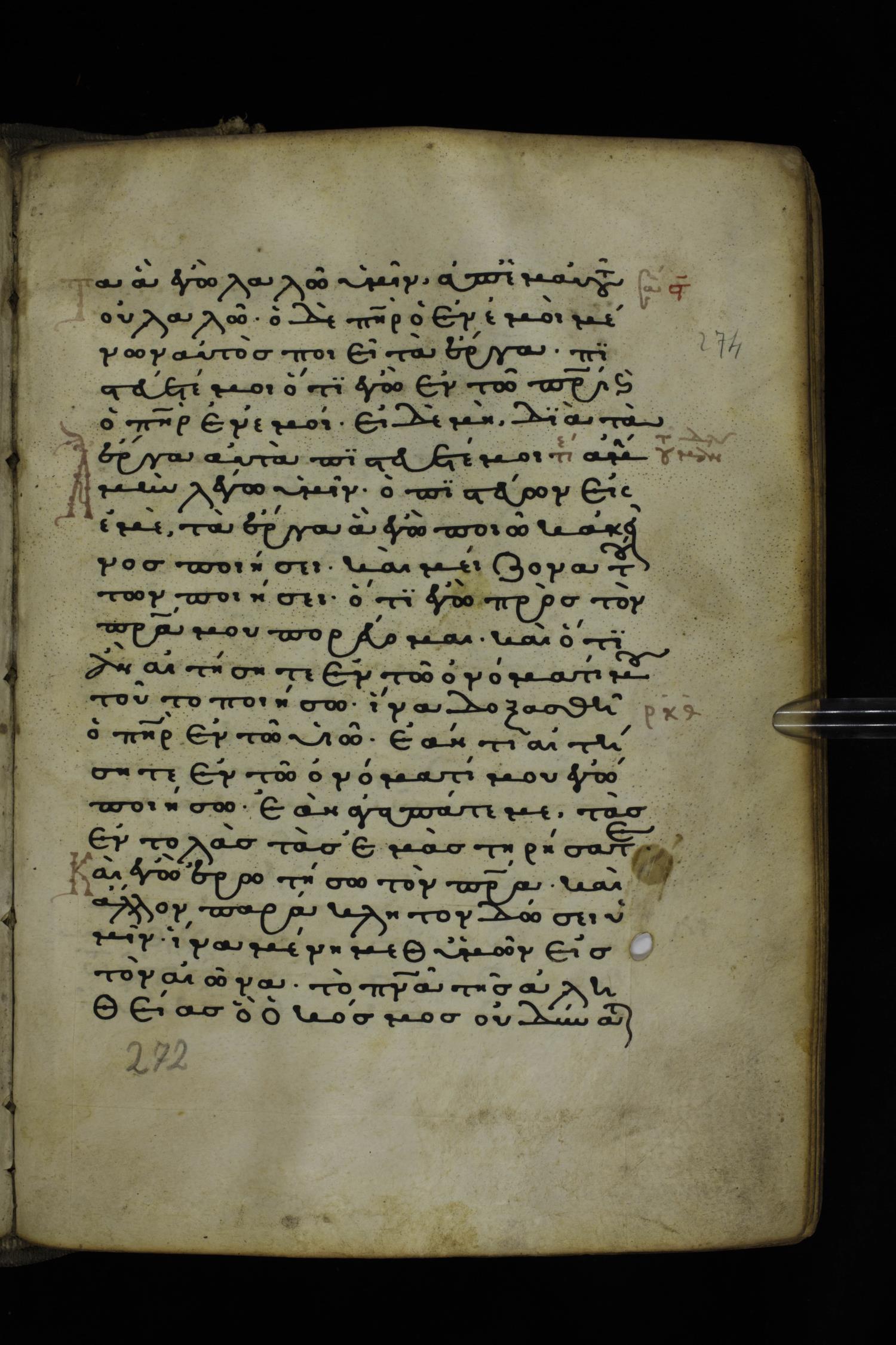 Thirteenth or fourteenth century minuscule of the Gospels on parchment; 312 leaves, 1 column, 19-22 lines per column. Images were taken at the National Library of Greece in Athens.