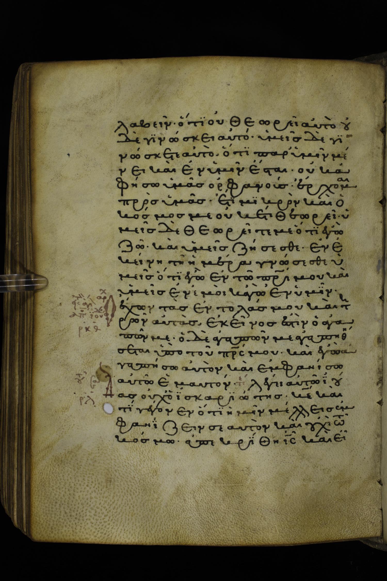 Thirteenth or fourteenth century minuscule of the Gospels on parchment; 312 leaves, 1 column, 19-22 lines per column. Images were taken at the National Library of Greece in Athens.