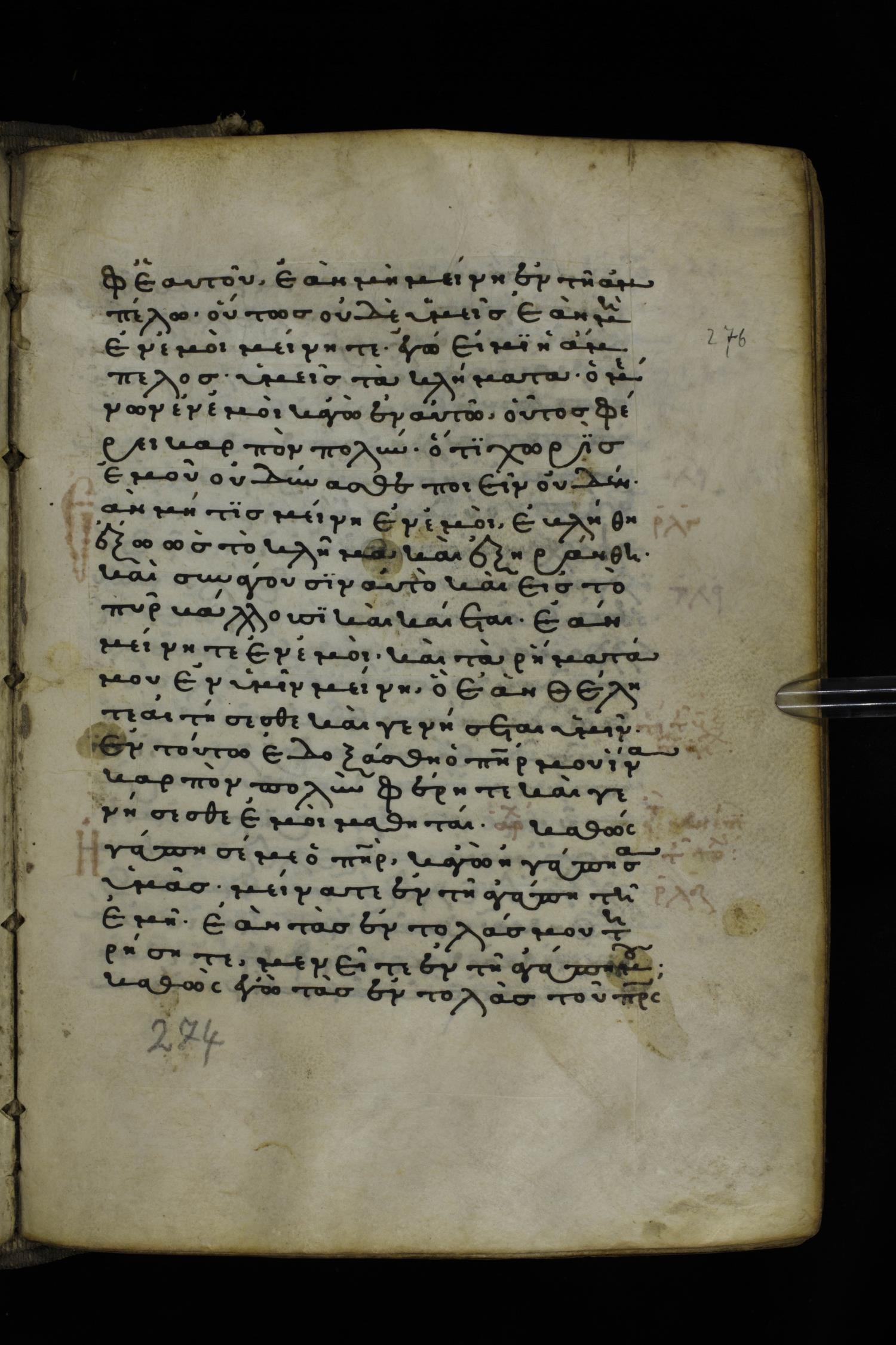 Thirteenth or fourteenth century minuscule of the Gospels on parchment; 312 leaves, 1 column, 19-22 lines per column. Images were taken at the National Library of Greece in Athens.