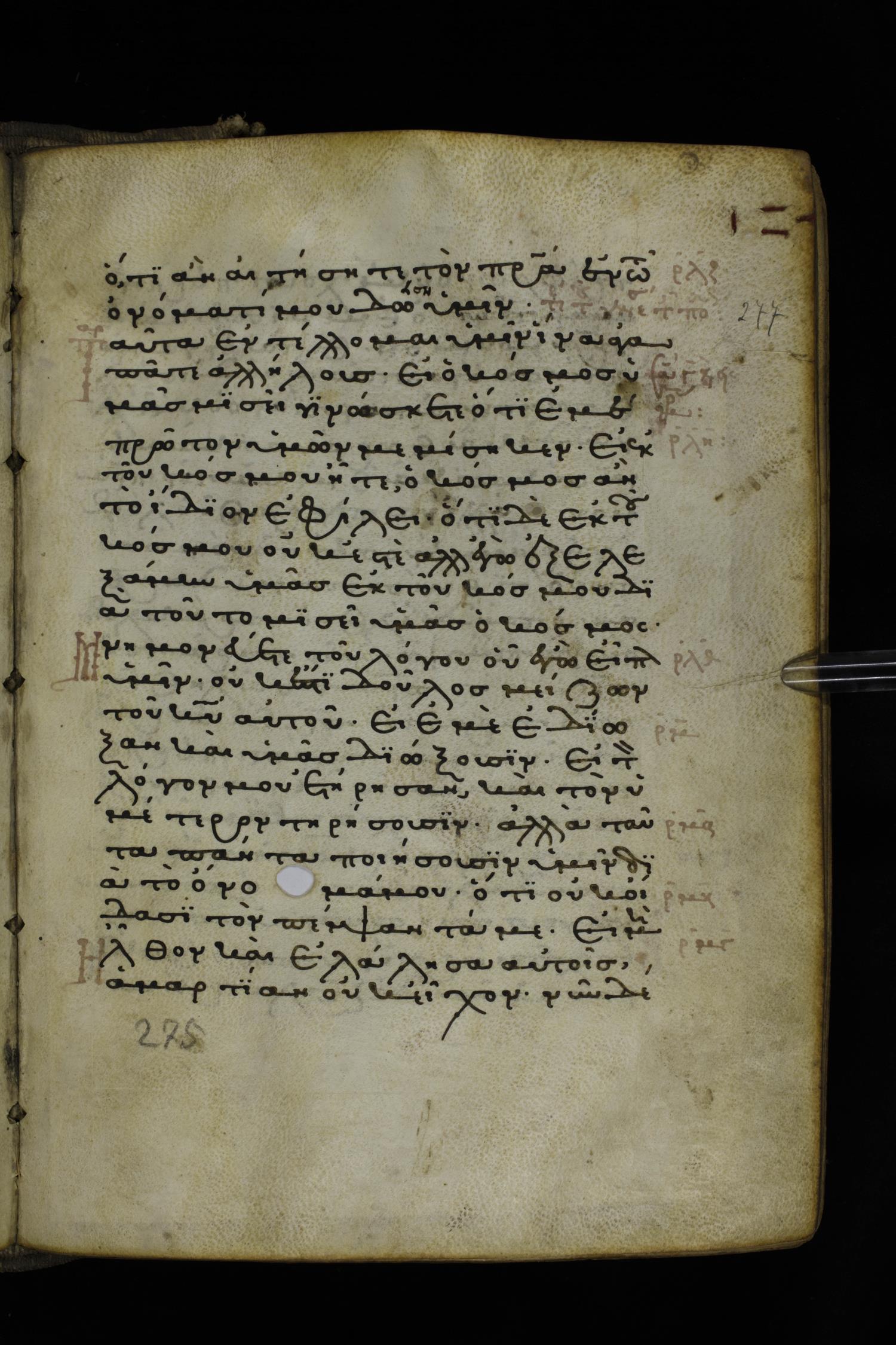 Thirteenth or fourteenth century minuscule of the Gospels on parchment; 312 leaves, 1 column, 19-22 lines per column. Images were taken at the National Library of Greece in Athens.