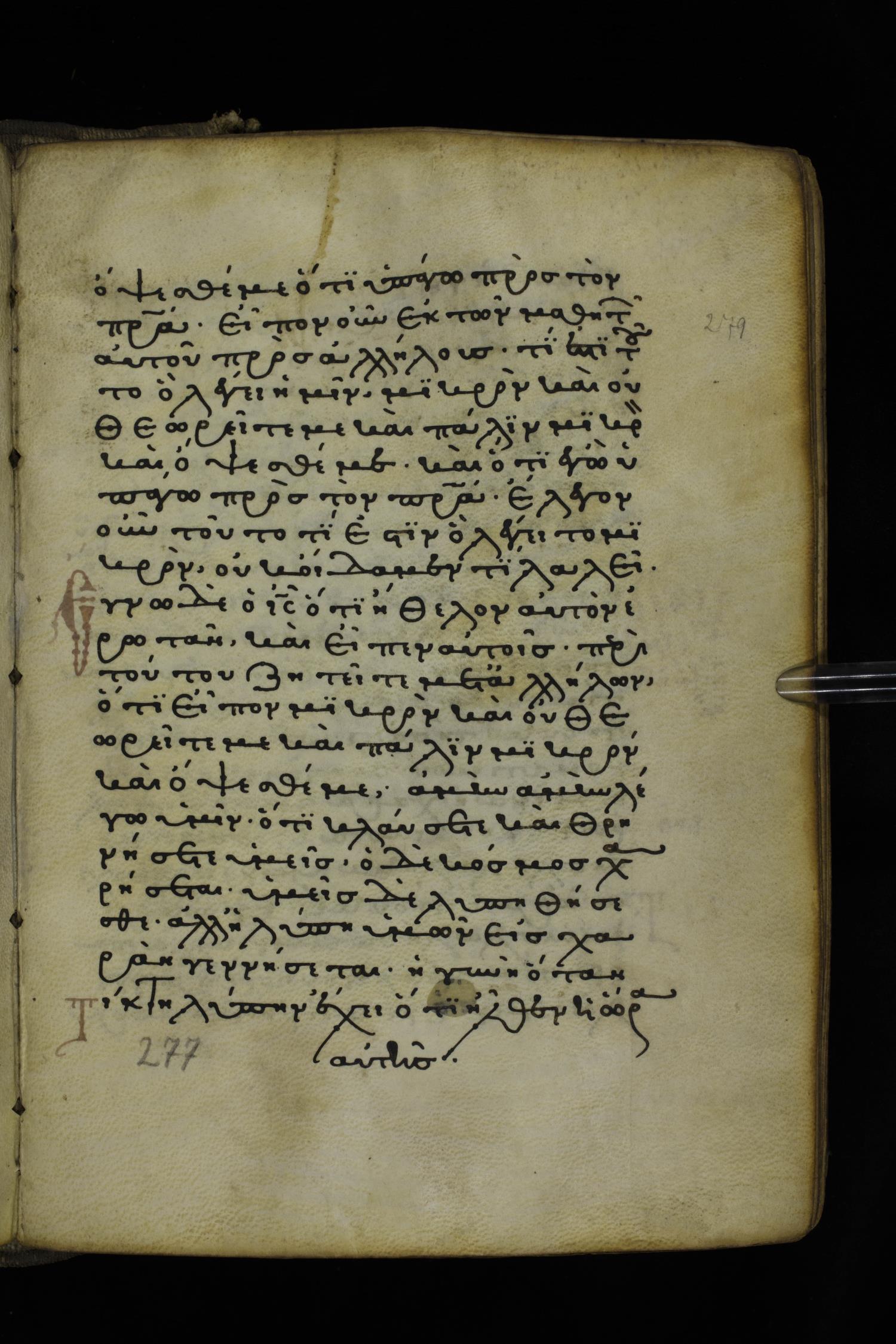 Thirteenth or fourteenth century minuscule of the Gospels on parchment; 312 leaves, 1 column, 19-22 lines per column. Images were taken at the National Library of Greece in Athens.