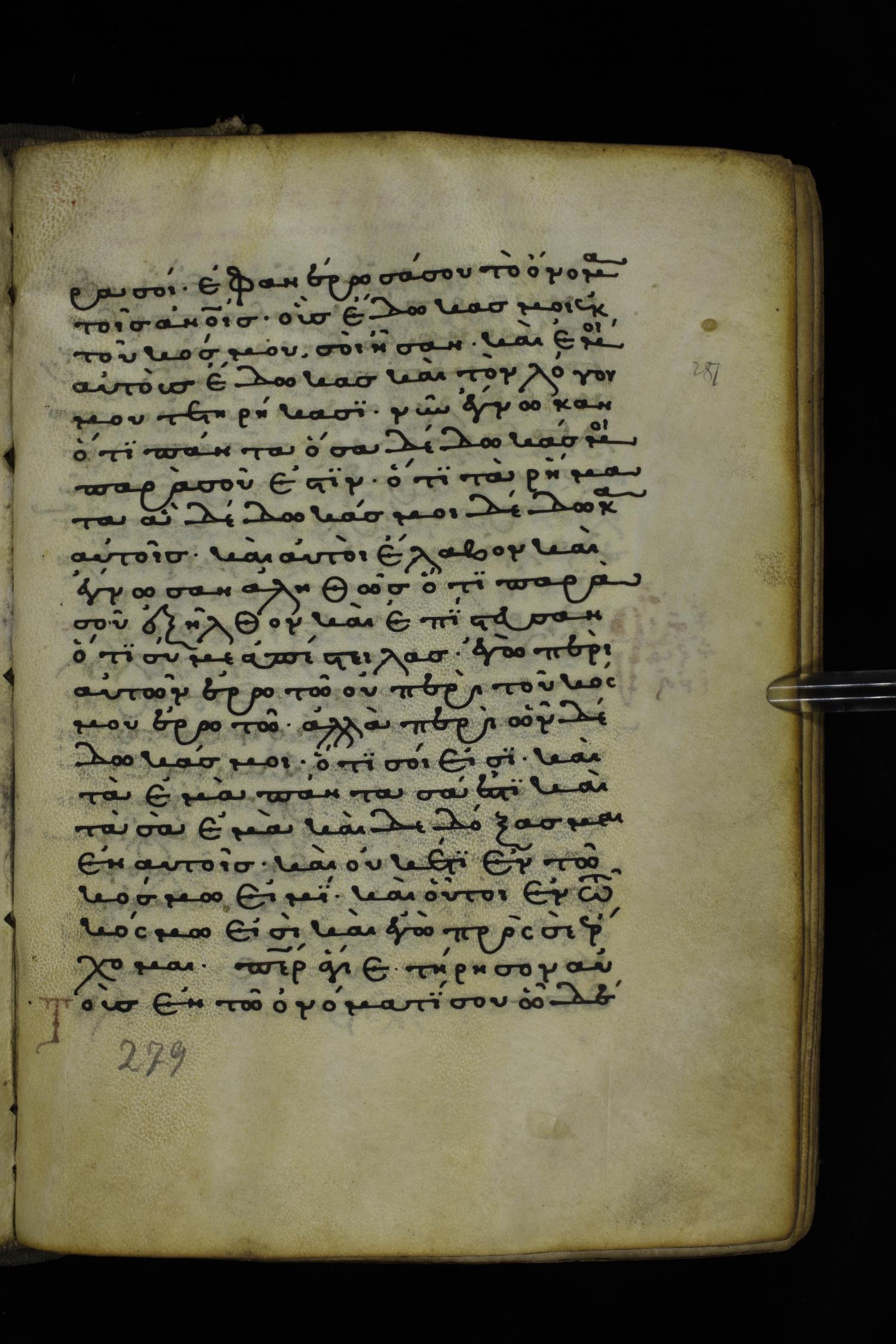 Thirteenth or fourteenth century minuscule of the Gospels on parchment; 312 leaves, 1 column, 19-22 lines per column. Images were taken at the National Library of Greece in Athens.