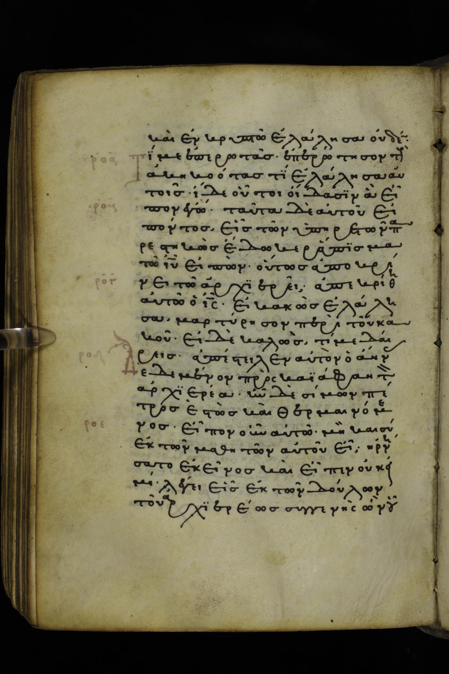 Thirteenth or fourteenth century minuscule of the Gospels on parchment; 312 leaves, 1 column, 19-22 lines per column. Images were taken at the National Library of Greece in Athens.