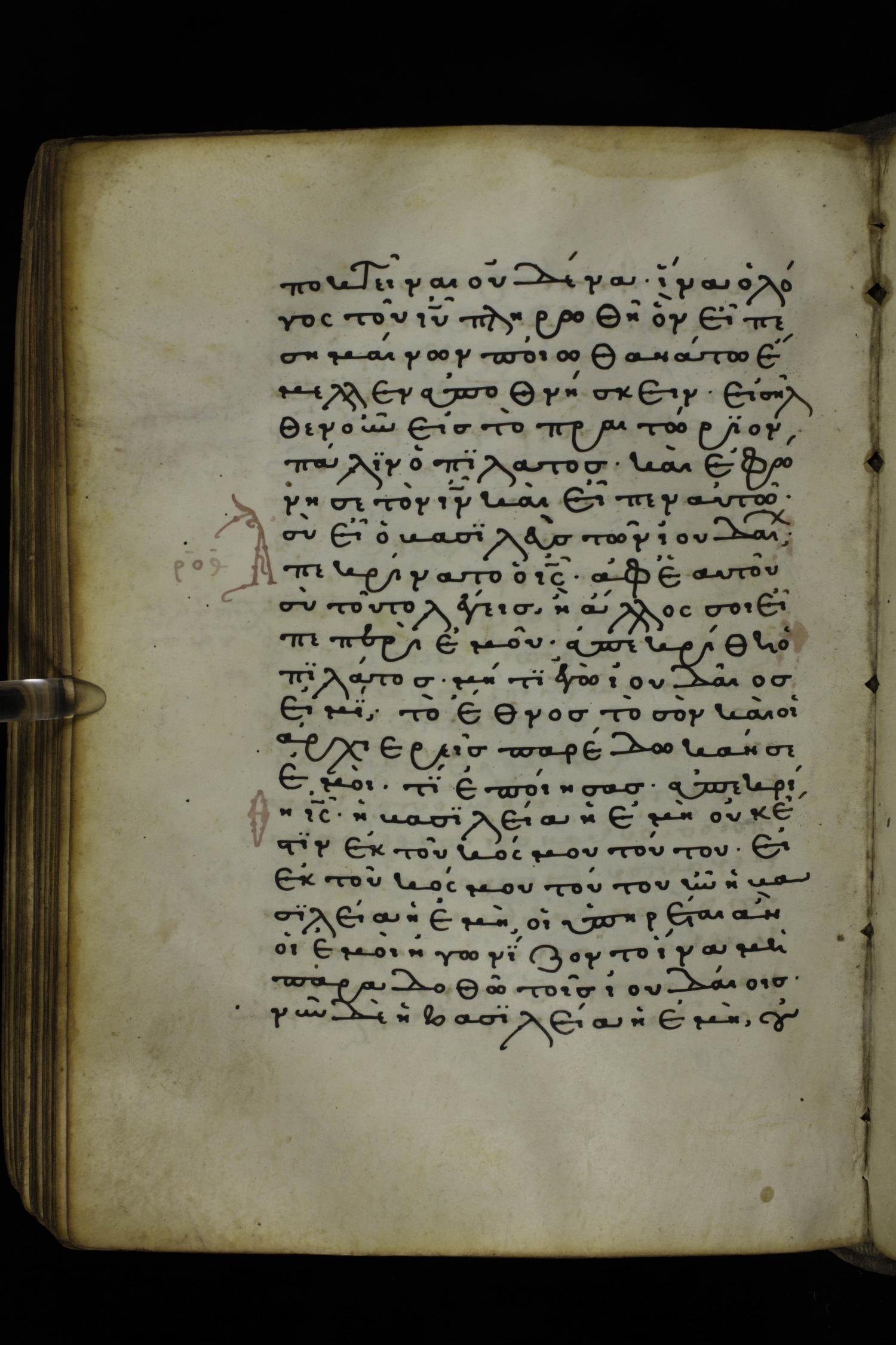 Thirteenth or fourteenth century minuscule of the Gospels on parchment; 312 leaves, 1 column, 19-22 lines per column. Images were taken at the National Library of Greece in Athens.