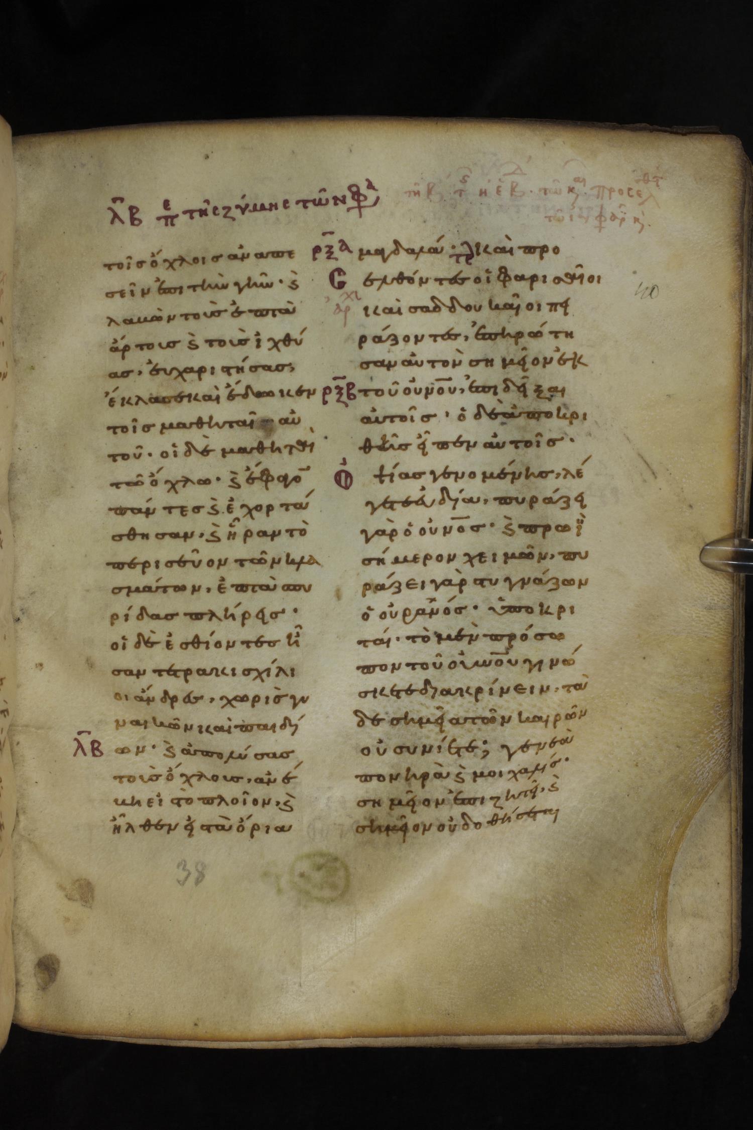 Eleventh century minuscule of the Gospels on parchment; 266 leaves, 2 column, 22 lines per column. Images were taken at the National Library of Greece in Athens.
