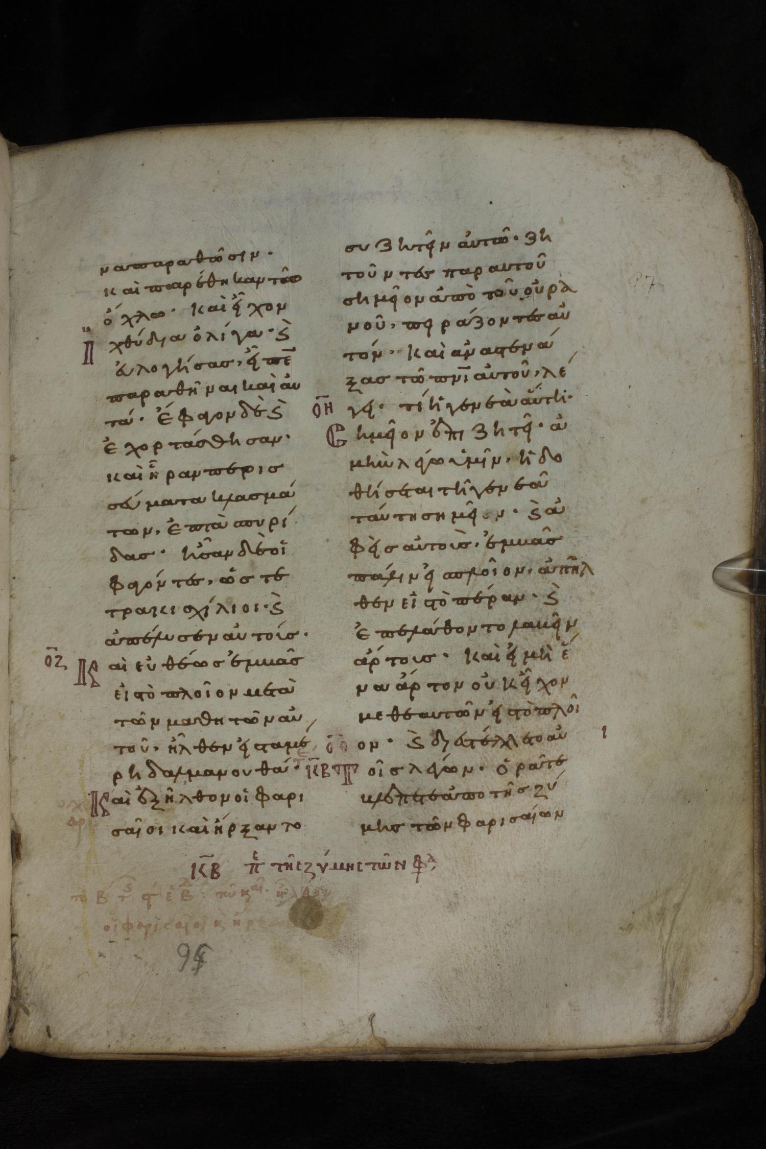 Eleventh century minuscule of the Gospels on parchment; 266 leaves, 2 column, 22 lines per column. Images were taken at the National Library of Greece in Athens.