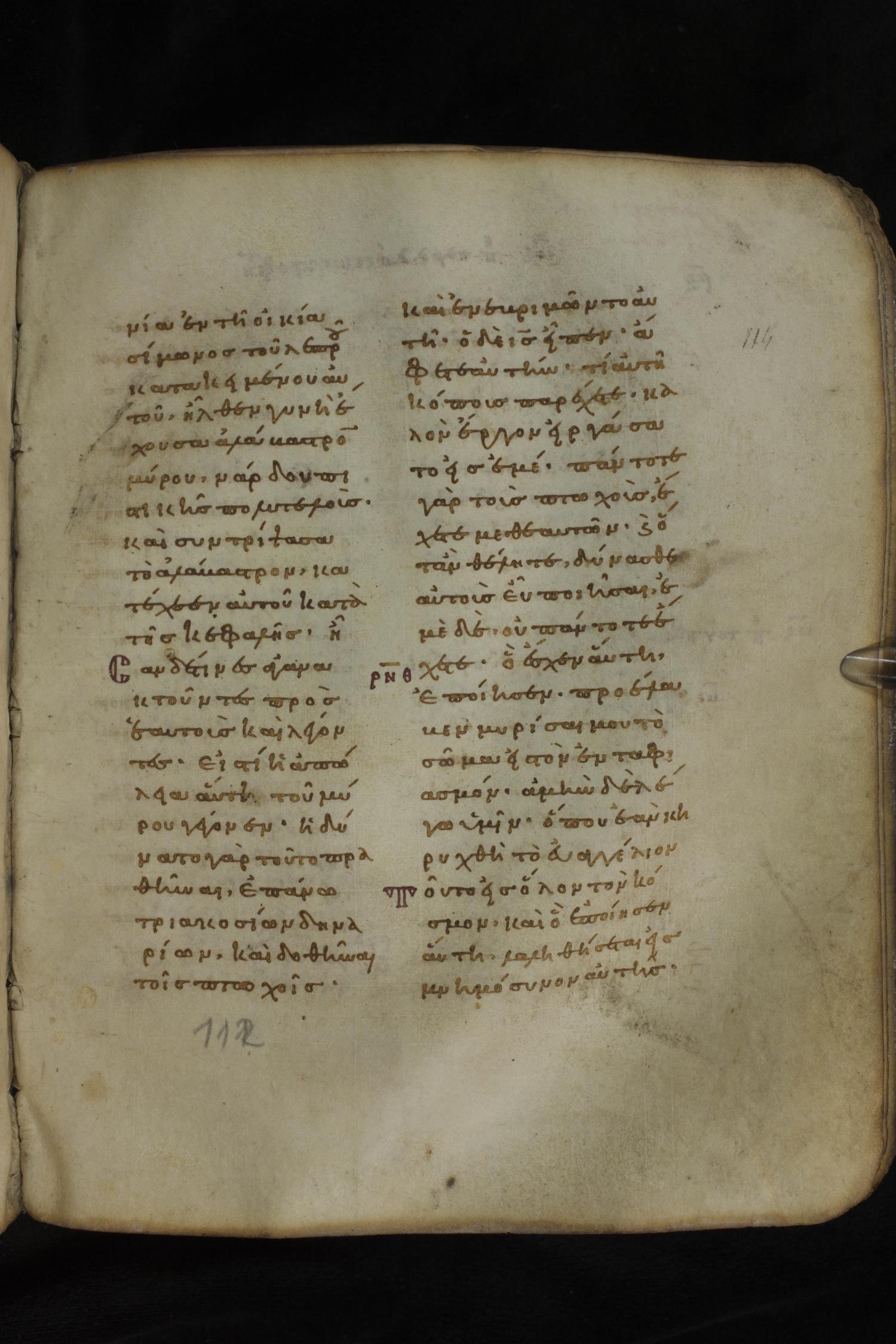 Eleventh century minuscule of the Gospels on parchment; 266 leaves, 2 column, 22 lines per column. Images were taken at the National Library of Greece in Athens.