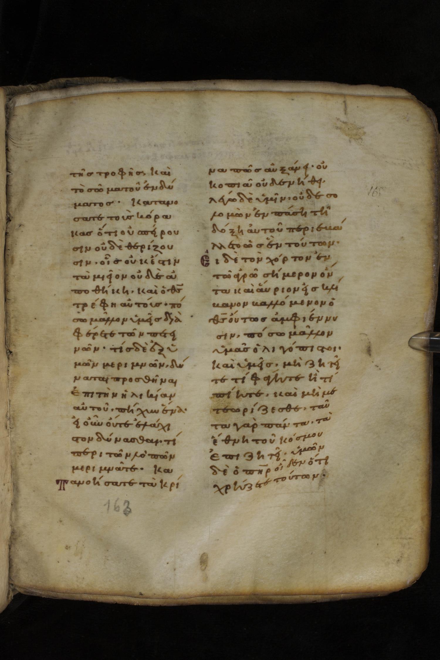 Eleventh century minuscule of the Gospels on parchment; 266 leaves, 2 column, 22 lines per column. Images were taken at the National Library of Greece in Athens.