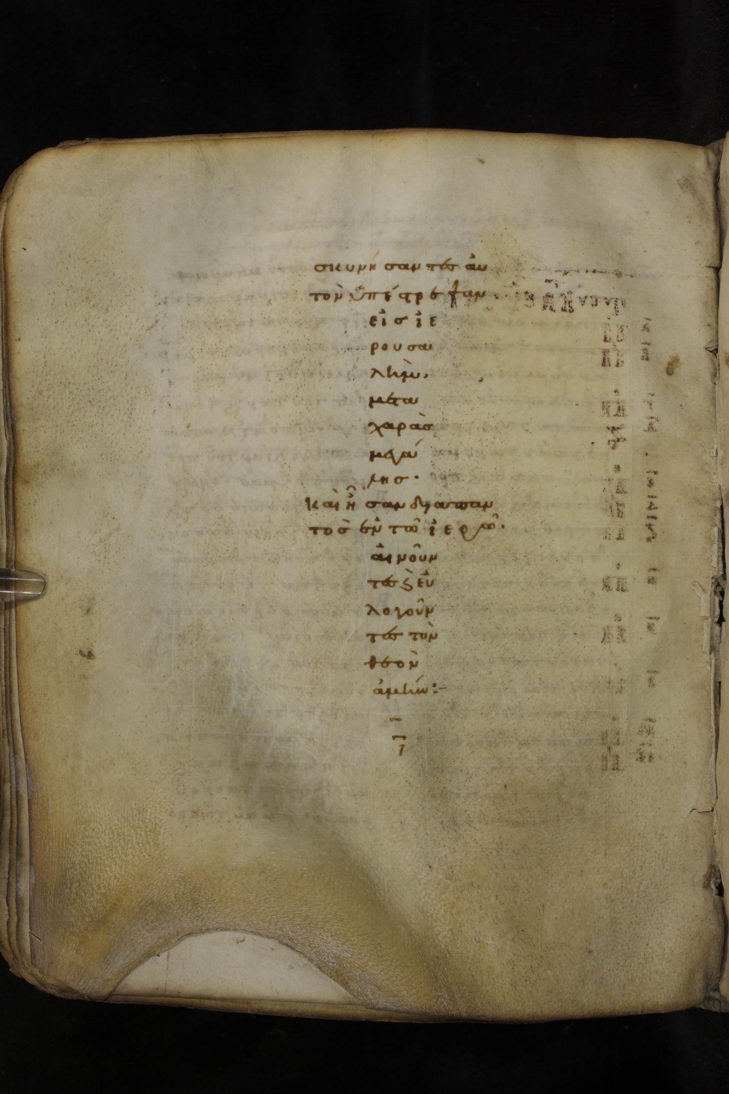 Eleventh century minuscule of the Gospels on parchment; 266 leaves, 2 column, 22 lines per column. Images were taken at the National Library of Greece in Athens.