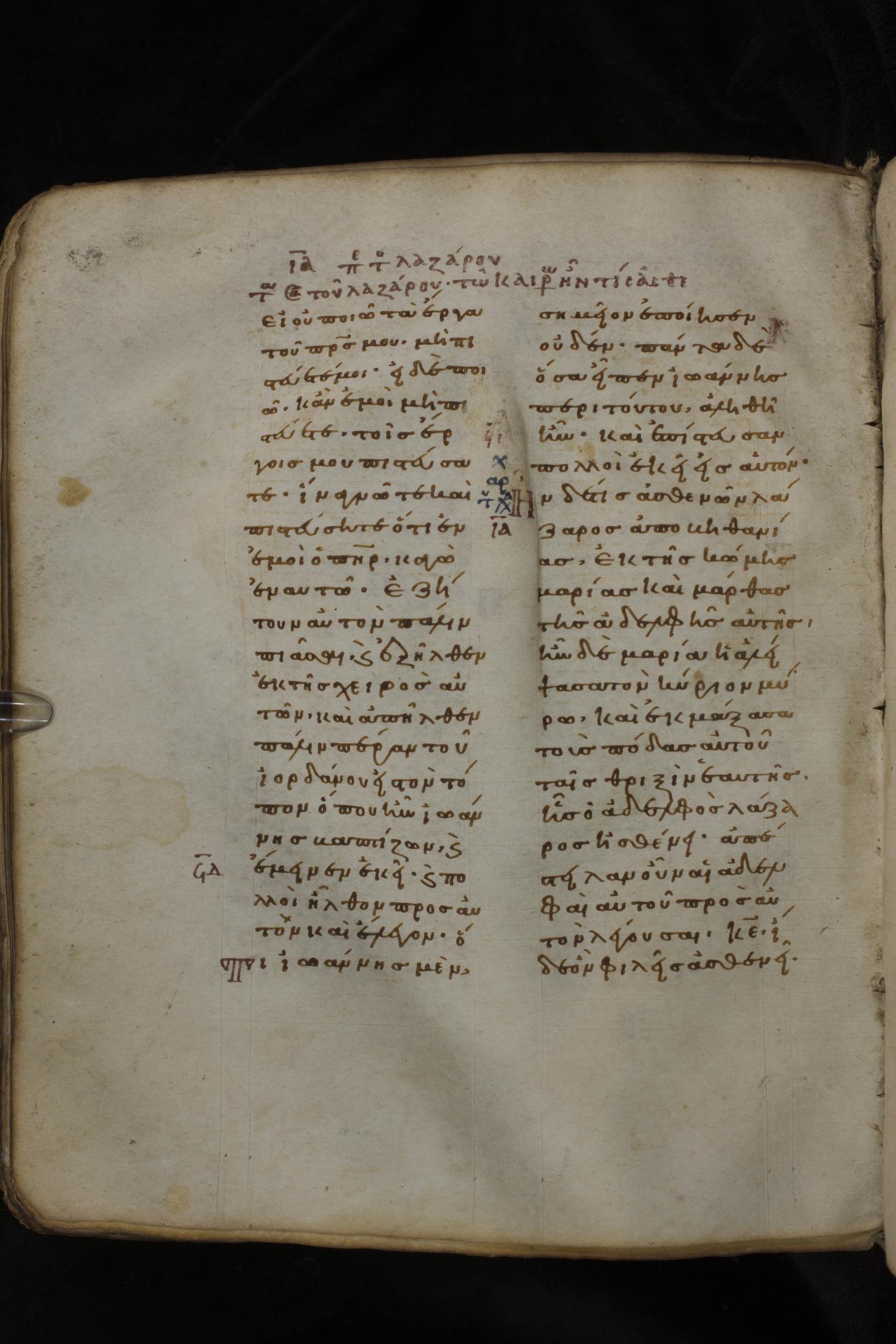 Ἦν δέ τις ἀσθενῶν, Λάζαρος ἀπὸ Βηθανίας ἐκ τῆς κώμης Μαρίας καὶ Μάρθας τῆς ἀδελφῆς αὐτῆς.