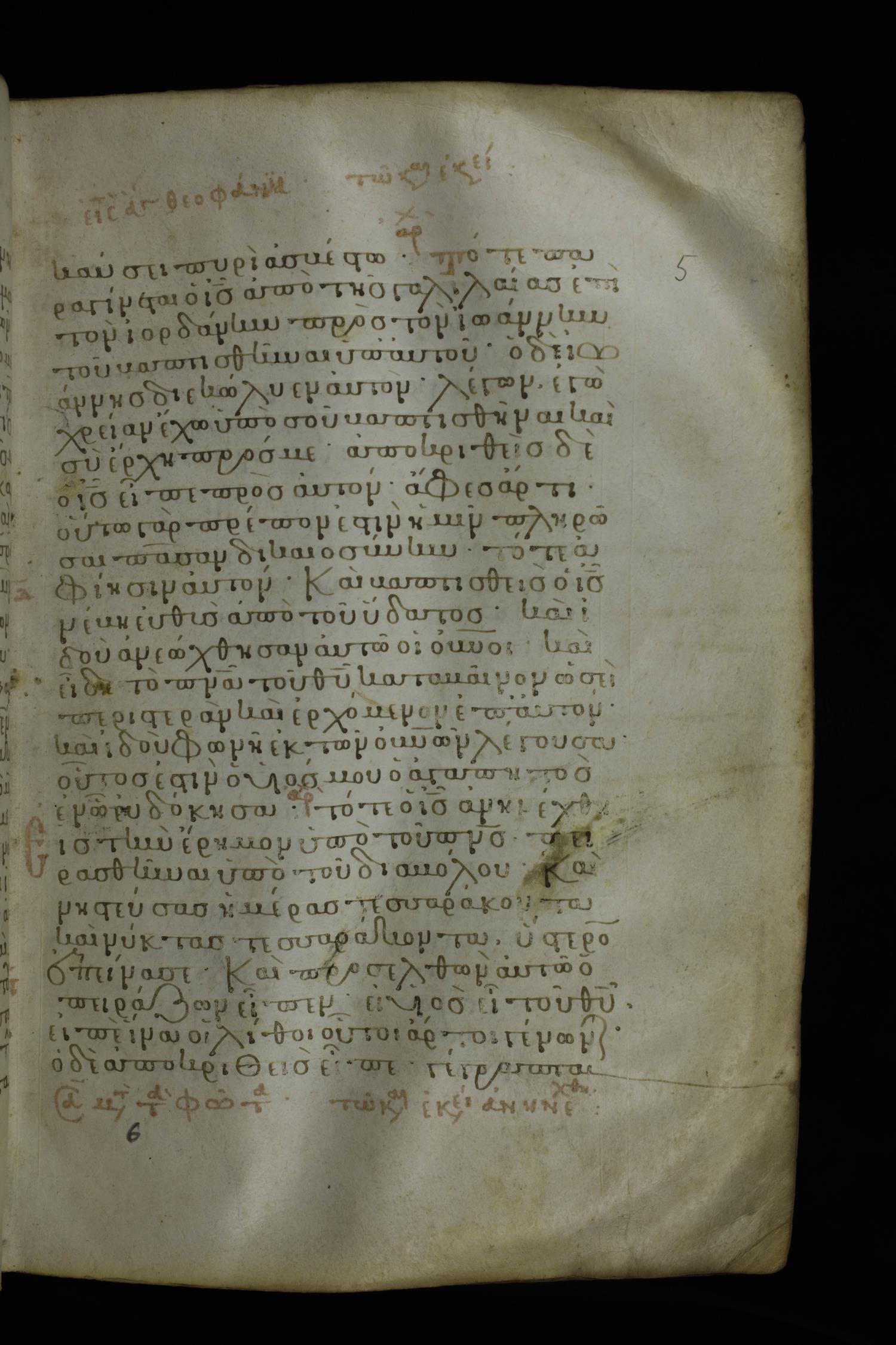 Twelfth century minuscule of the Gospels on parchment; 230 leaves, 1 column, 24-26 lines per column. Images were taken at the National Library of Greece in Athens.