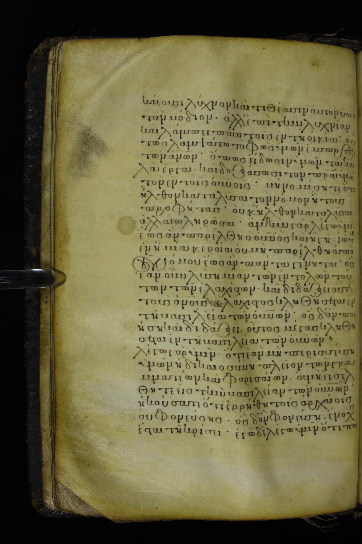 Twelfth century minuscule of the Gospels on parchment; 230 leaves, 1 column, 24-26 lines per column. Images were taken at the National Library of Greece in Athens.