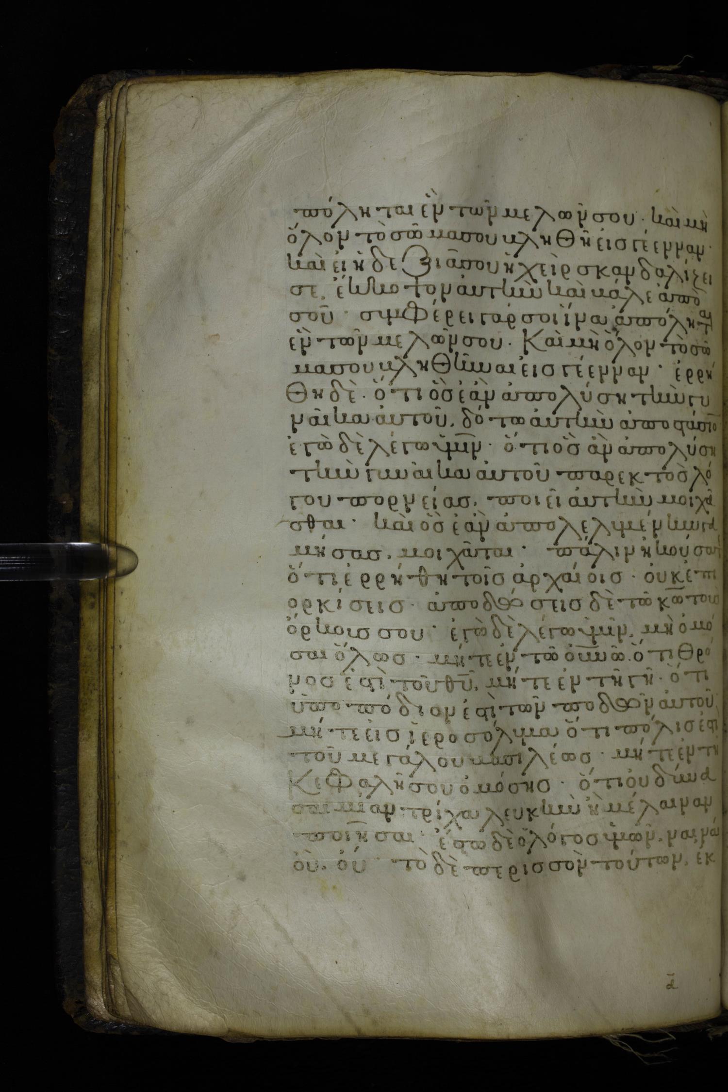 Twelfth century minuscule of the Gospels on parchment; 230 leaves, 1 column, 24-26 lines per column. Images were taken at the National Library of Greece in Athens.