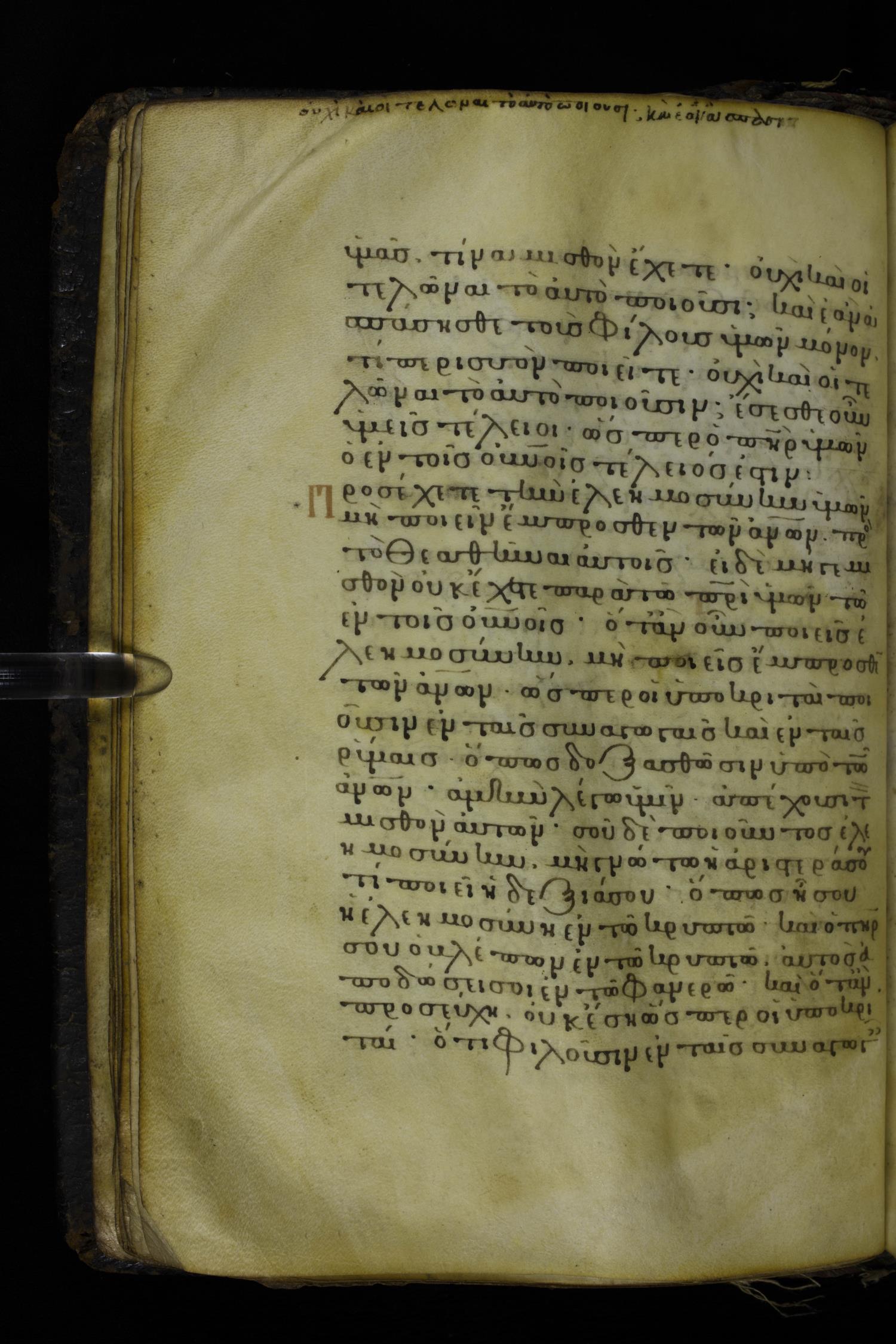 Twelfth century minuscule of the Gospels on parchment; 230 leaves, 1 column, 24-26 lines per column. Images were taken at the National Library of Greece in Athens.