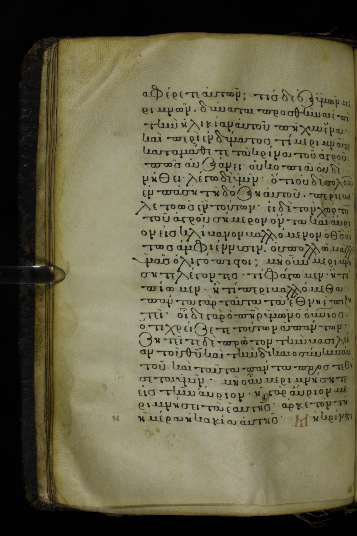 Twelfth century minuscule of the Gospels on parchment; 230 leaves, 1 column, 24-26 lines per column. Images were taken at the National Library of Greece in Athens.