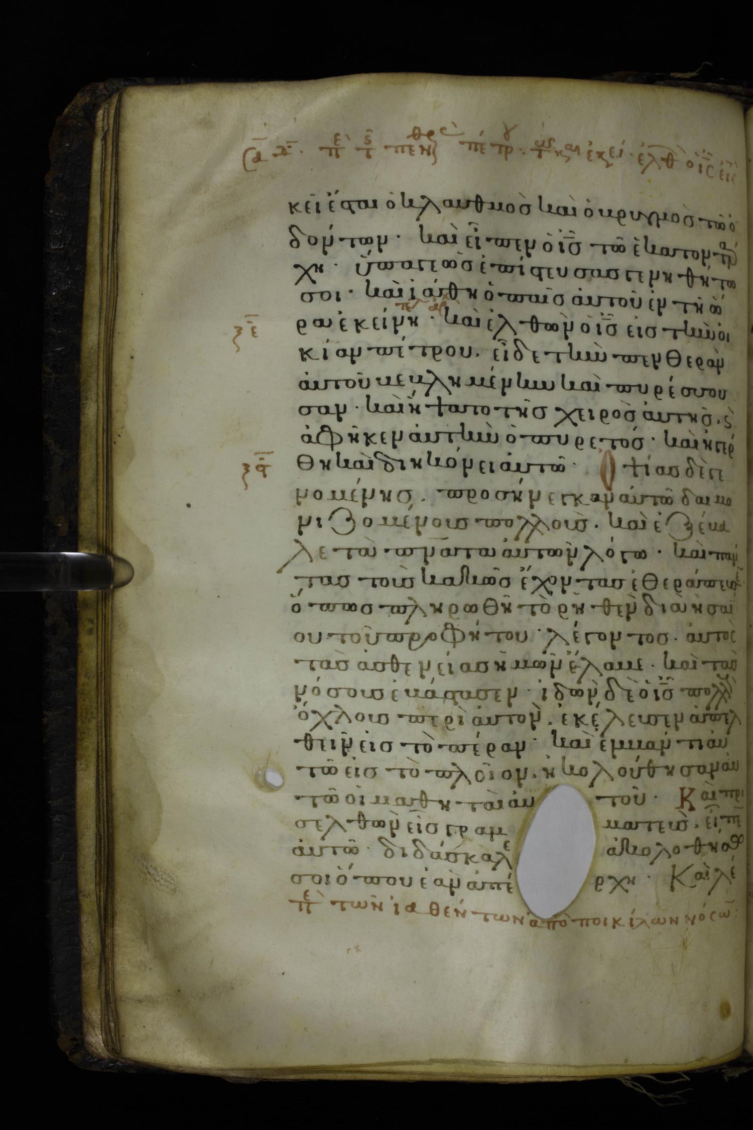 Twelfth century minuscule of the Gospels on parchment; 230 leaves, 1 column, 24-26 lines per column. Images were taken at the National Library of Greece in Athens.