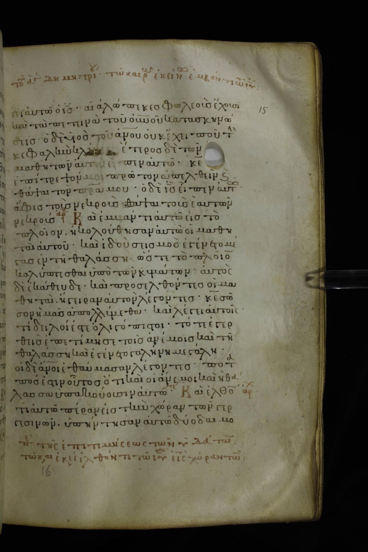 Twelfth century minuscule of the Gospels on parchment; 230 leaves, 1 column, 24-26 lines per column. Images were taken at the National Library of Greece in Athens.