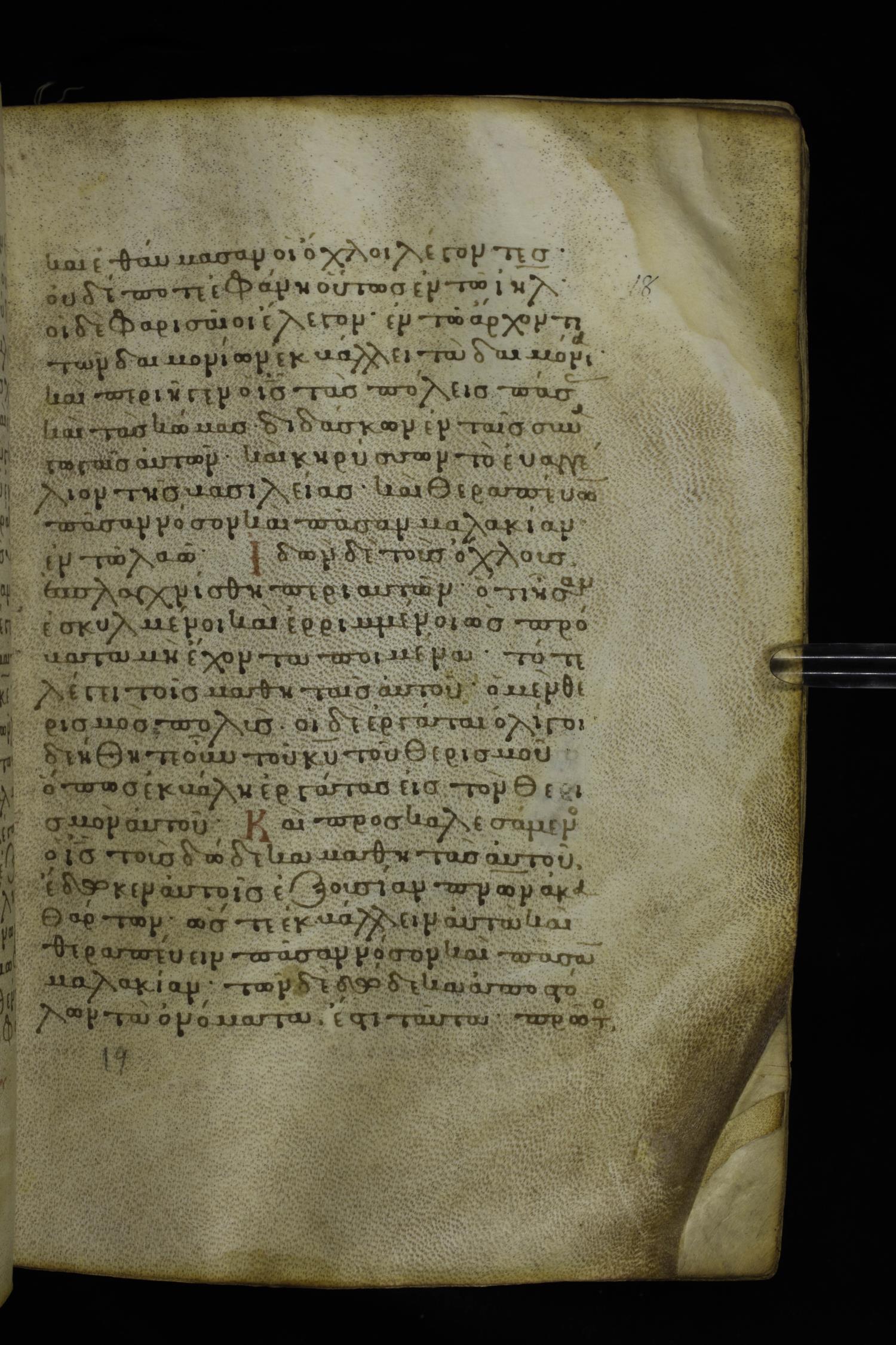 Twelfth century minuscule of the Gospels on parchment; 230 leaves, 1 column, 24-26 lines per column. Images were taken at the National Library of Greece in Athens.