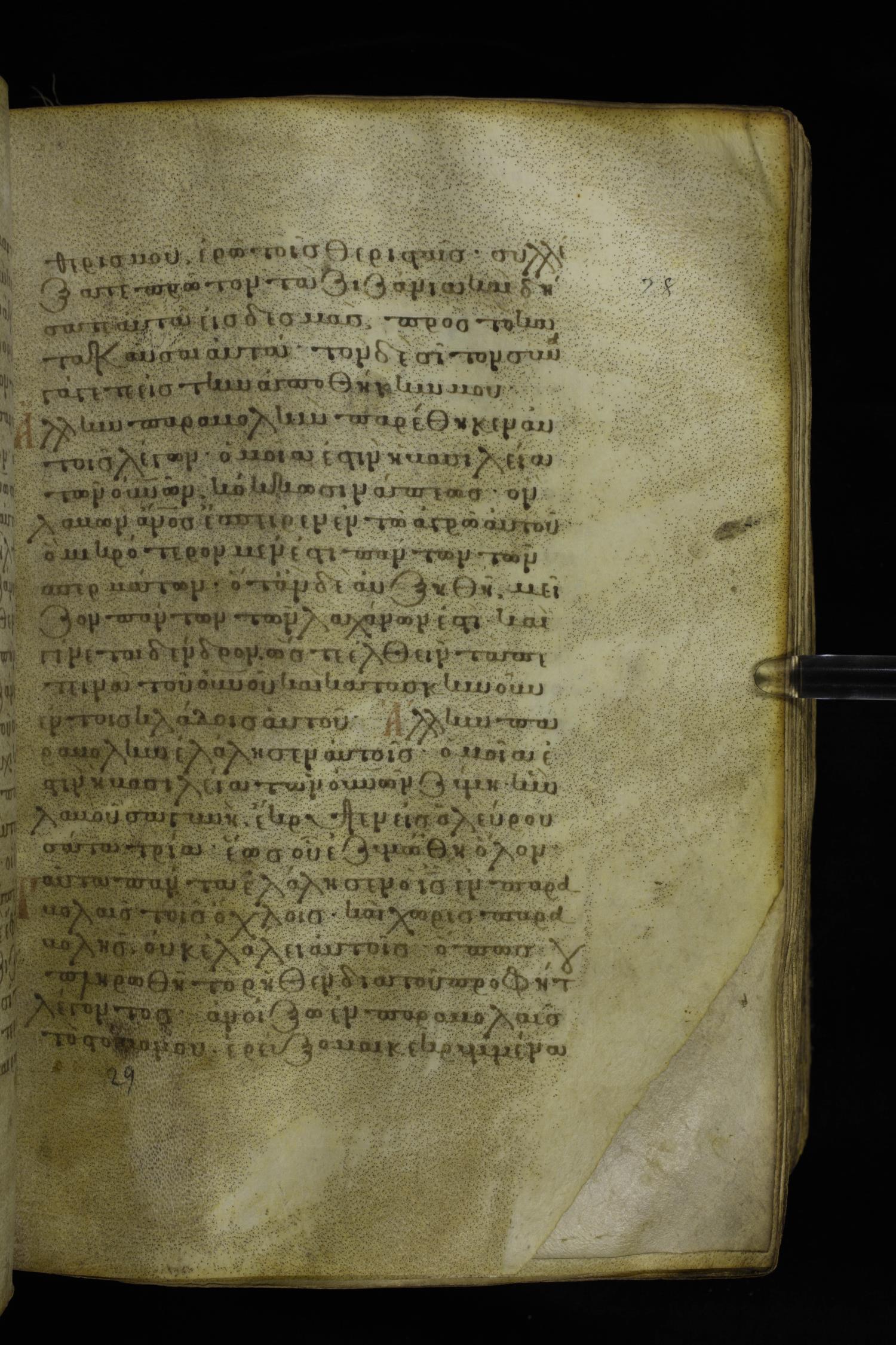 Twelfth century minuscule of the Gospels on parchment; 230 leaves, 1 column, 24-26 lines per column. Images were taken at the National Library of Greece in Athens.