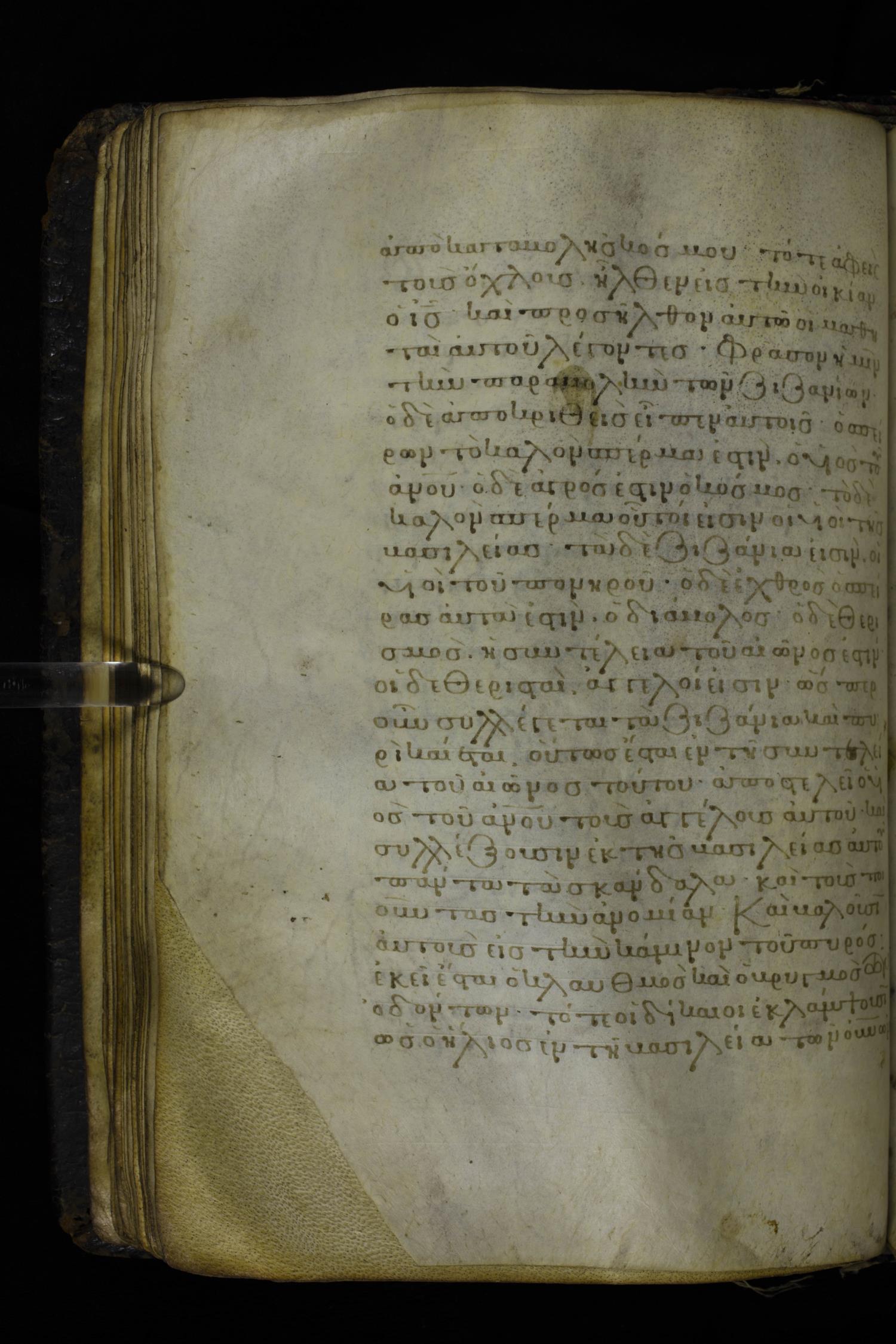 Twelfth century minuscule of the Gospels on parchment; 230 leaves, 1 column, 24-26 lines per column. Images were taken at the National Library of Greece in Athens.