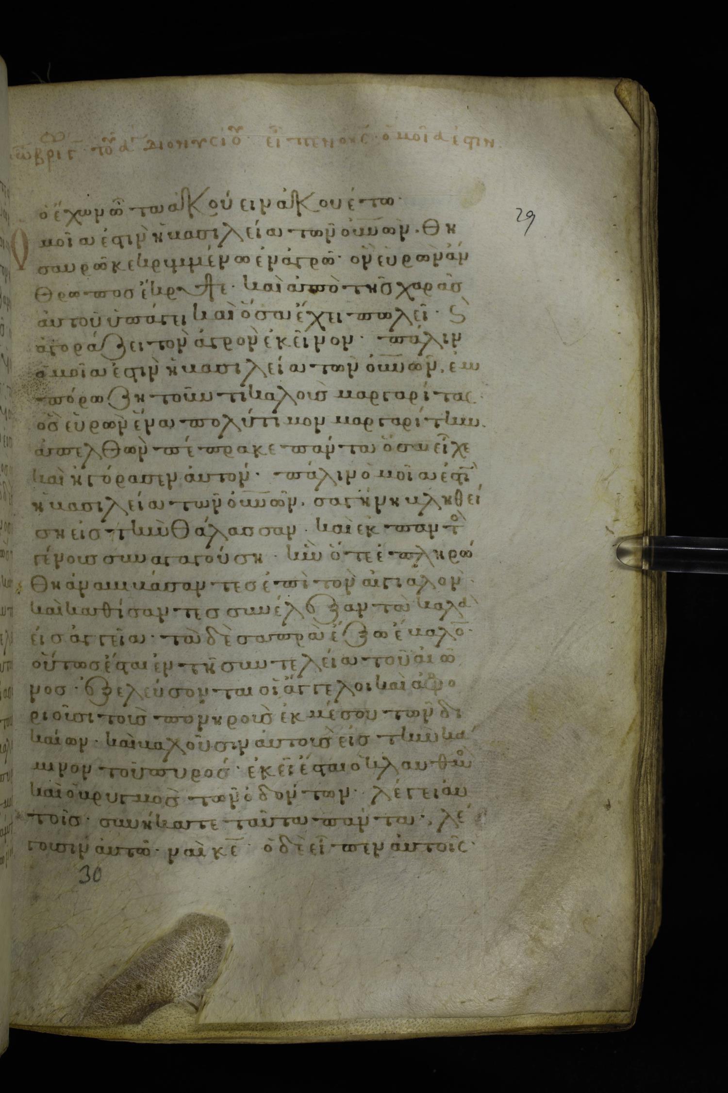 Twelfth century minuscule of the Gospels on parchment; 230 leaves, 1 column, 24-26 lines per column. Images were taken at the National Library of Greece in Athens.