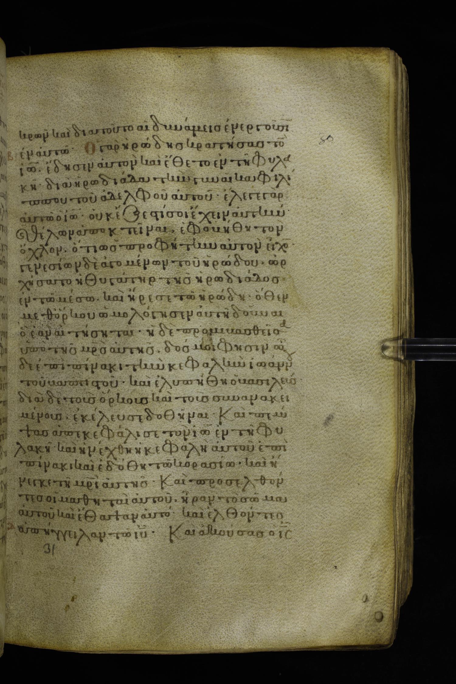 Twelfth century minuscule of the Gospels on parchment; 230 leaves, 1 column, 24-26 lines per column. Images were taken at the National Library of Greece in Athens.