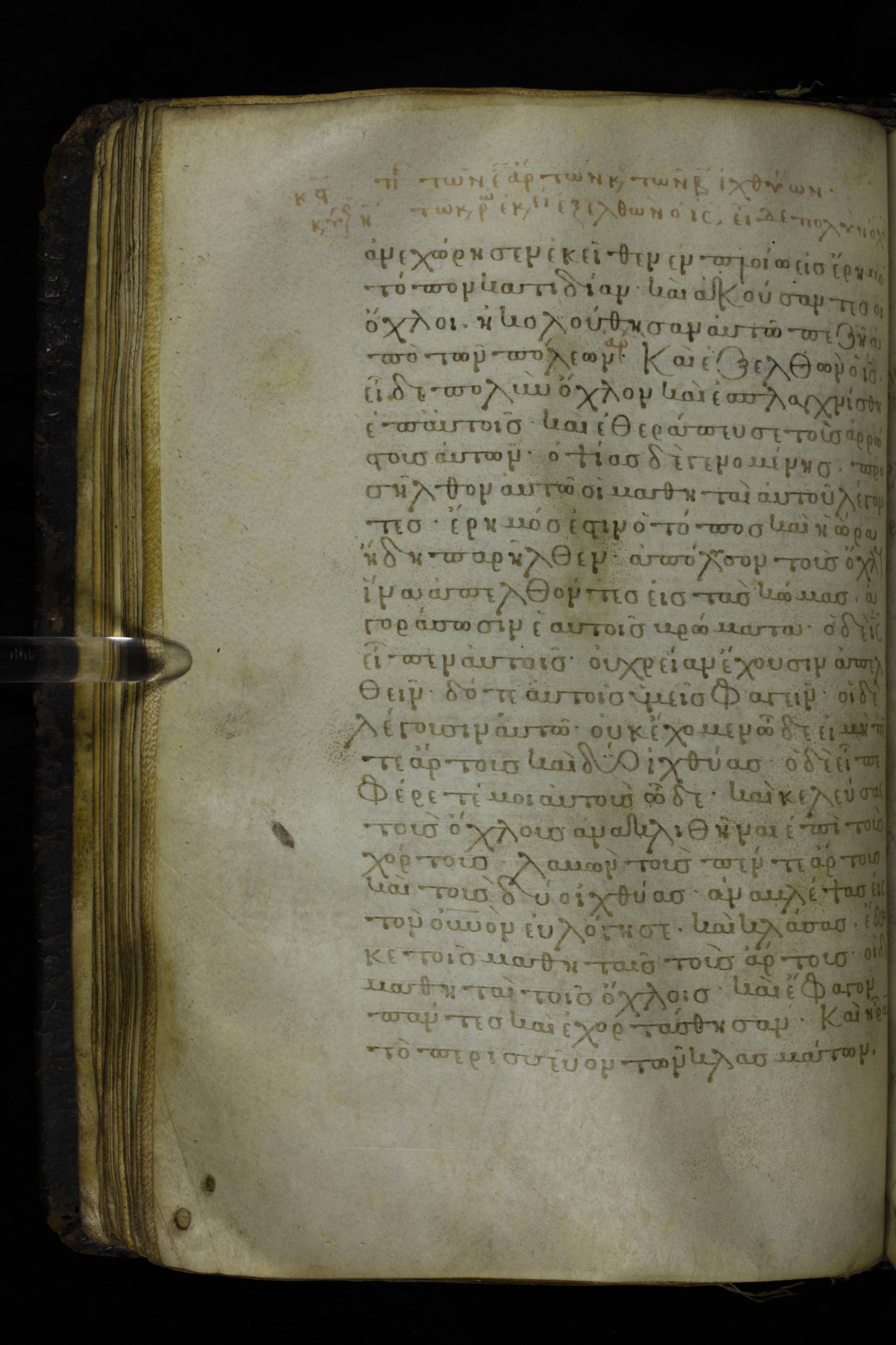 Twelfth century minuscule of the Gospels on parchment; 230 leaves, 1 column, 24-26 lines per column. Images were taken at the National Library of Greece in Athens.