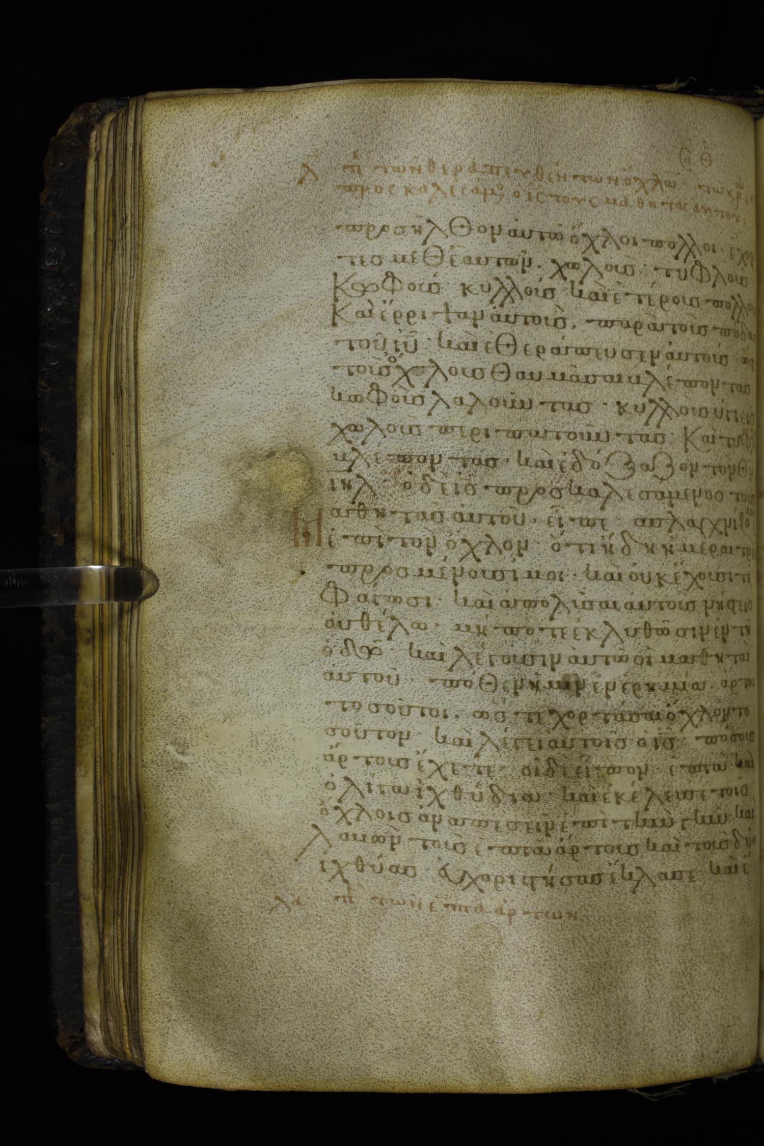 Twelfth century minuscule of the Gospels on parchment; 230 leaves, 1 column, 24-26 lines per column. Images were taken at the National Library of Greece in Athens.